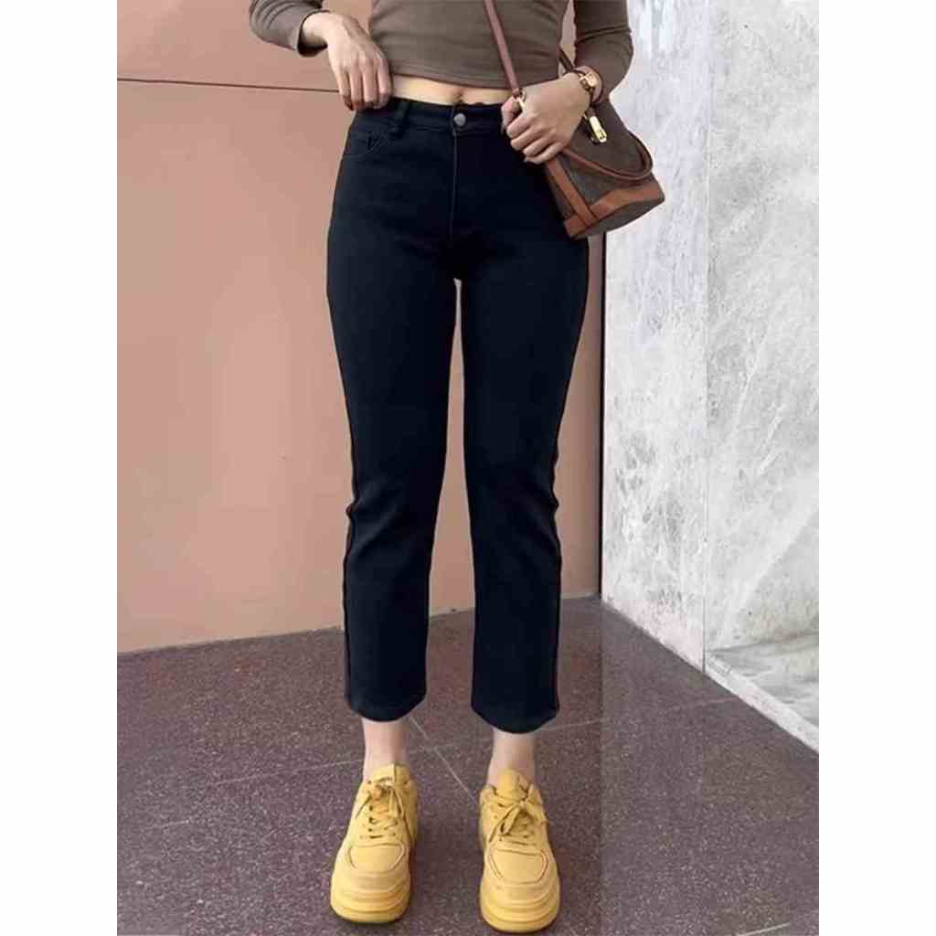 beautified กางเกงยีนส์สีดำผ้ายืด เอวสูง กางเกง9ส่วน ยีนส์ยืดคนอ้วน กางเกงยีนส์ผญ 5xl