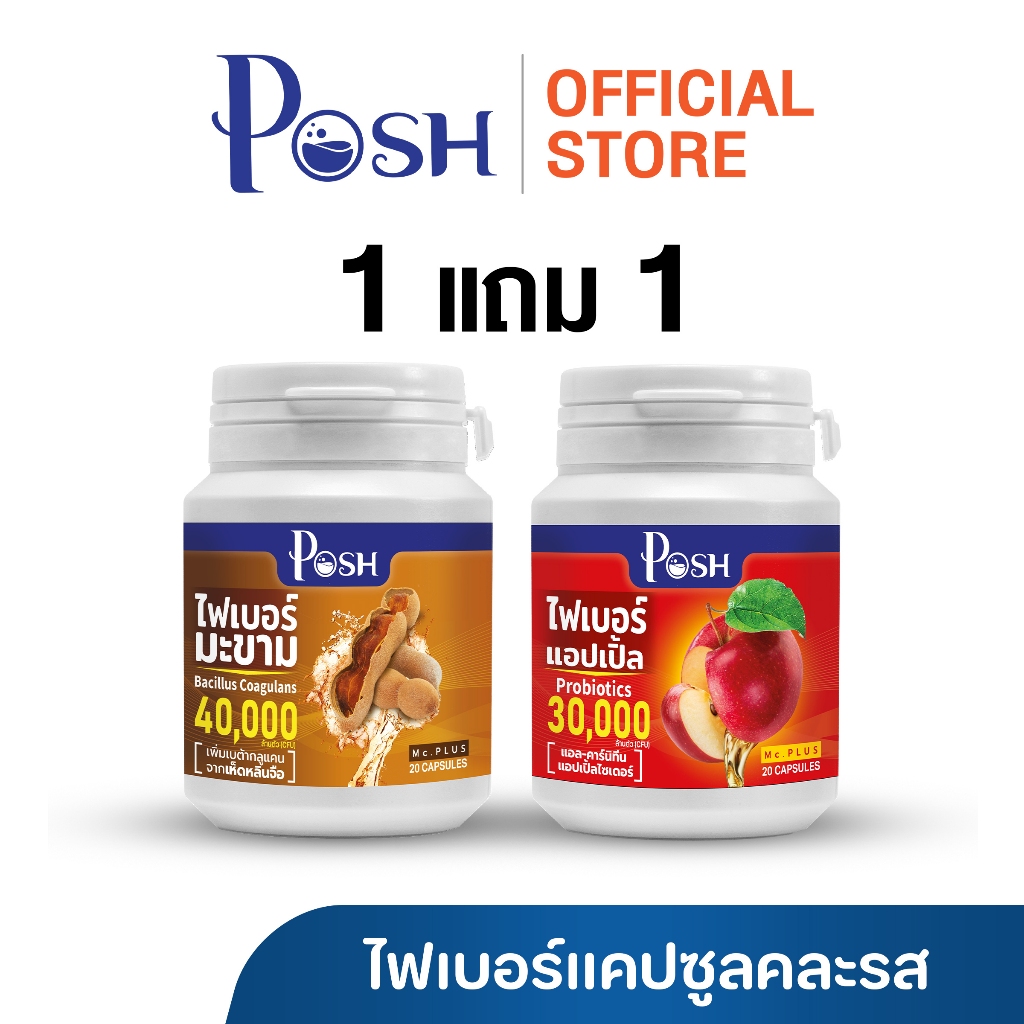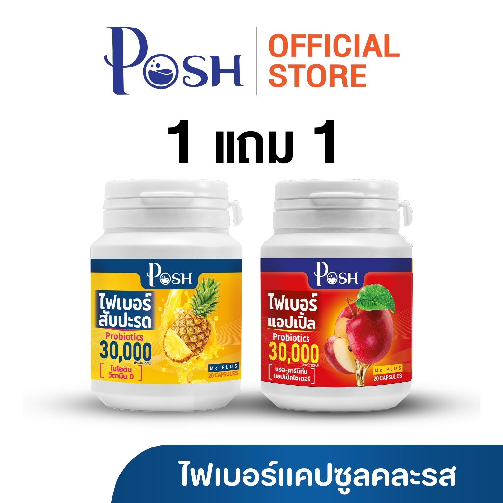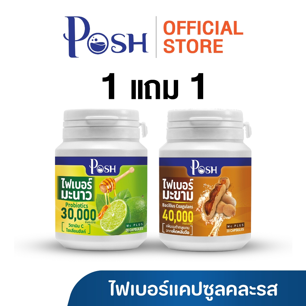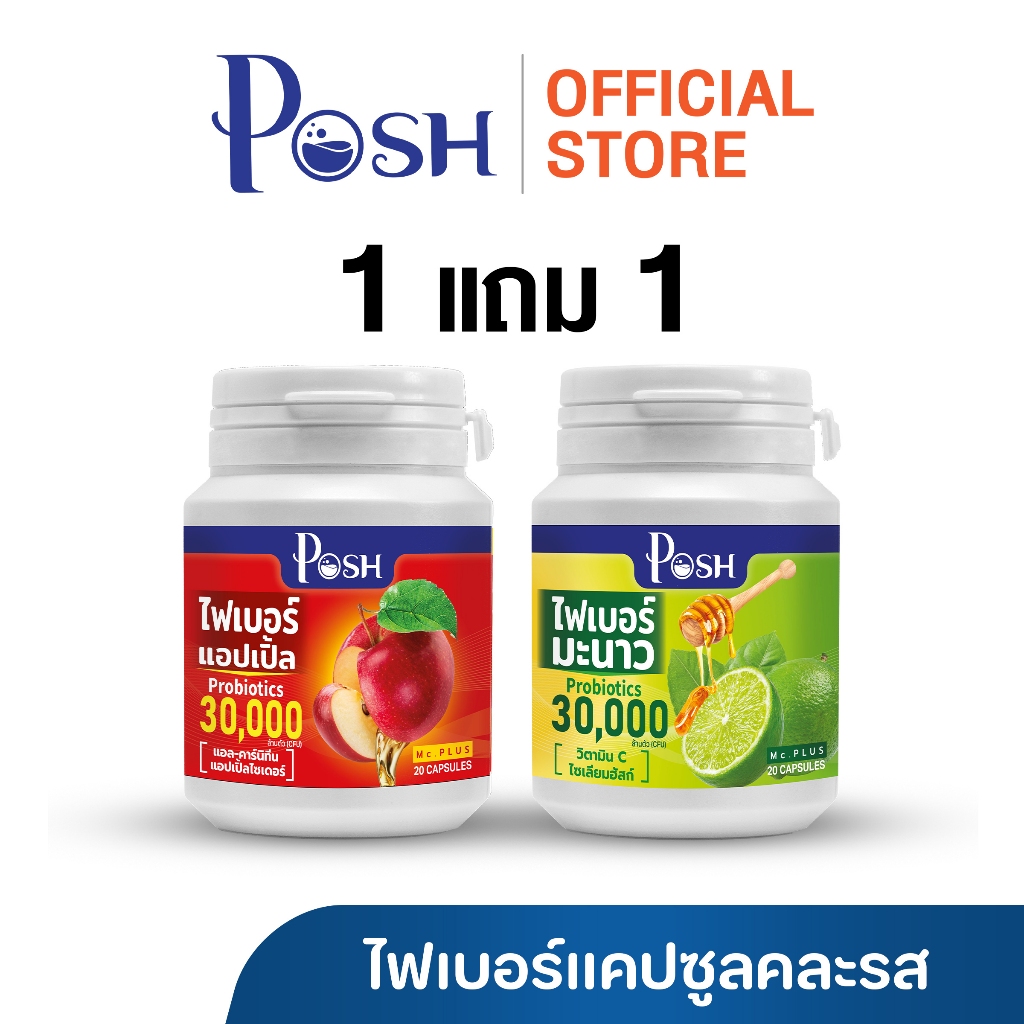 Posh Medica ไฟเบอร์มะนาว / มะขาม / แอปเปิ้ล / สับปะรด แคปซูล 20 cap 1แถม1 (คละรสชาติ)