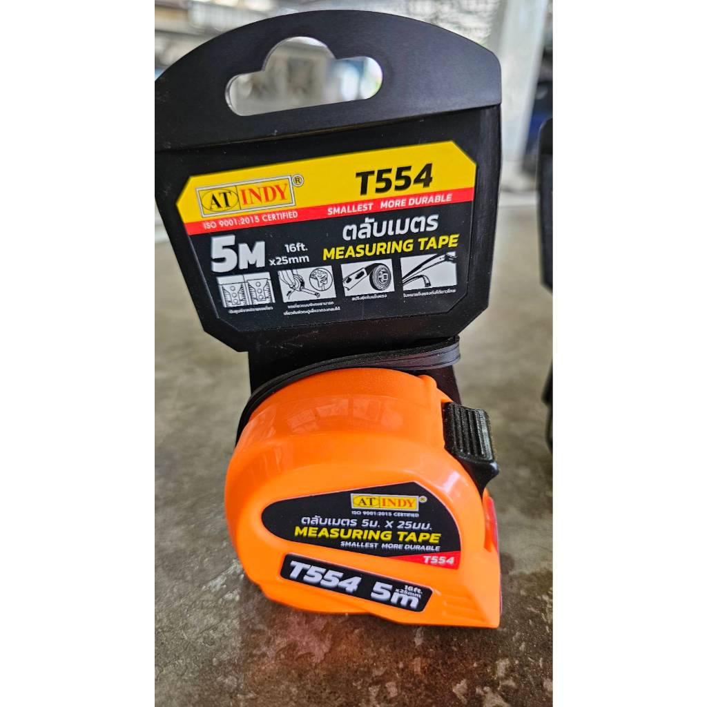 ถูกมาก ส่งไว ตลับเมตร ยาว 5เมตร หน้ากว้าง 1" ตัวเล็ก INDY T554 เหลือง/ส้ม