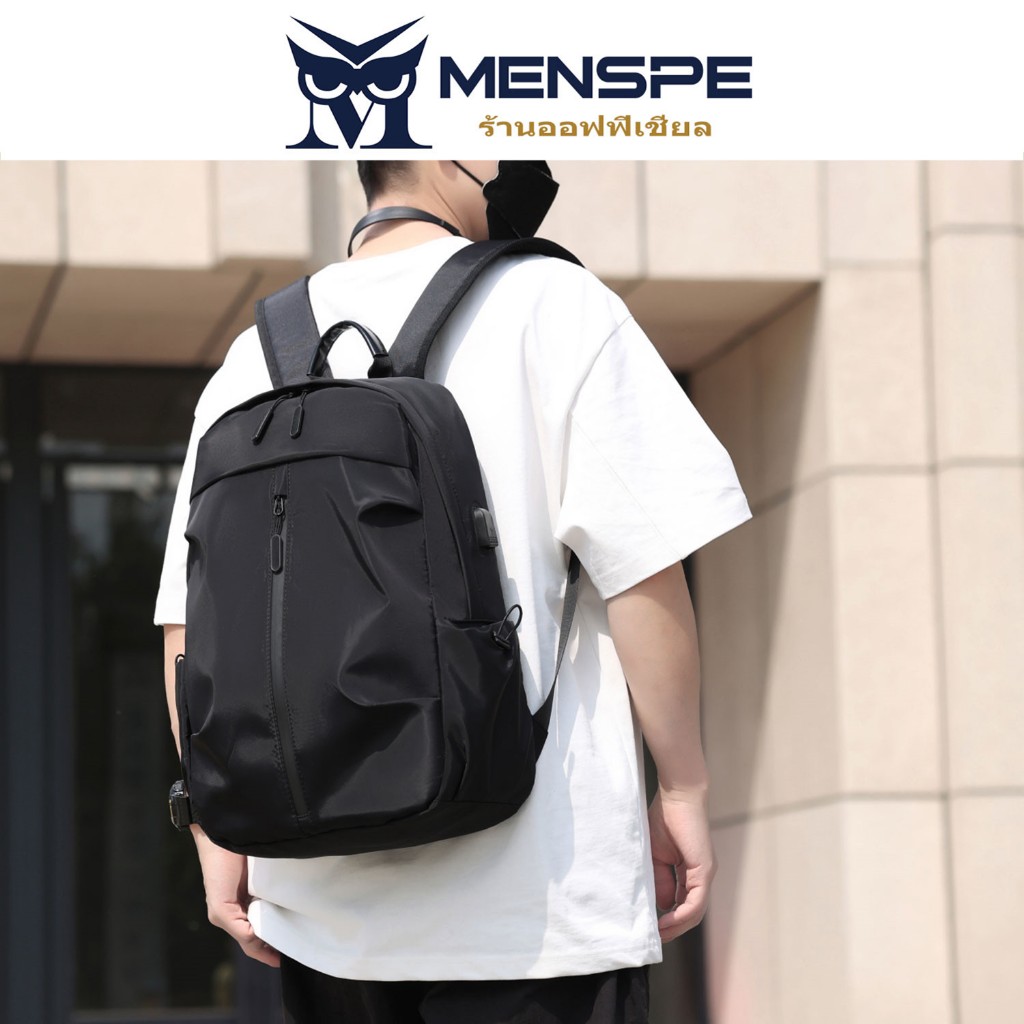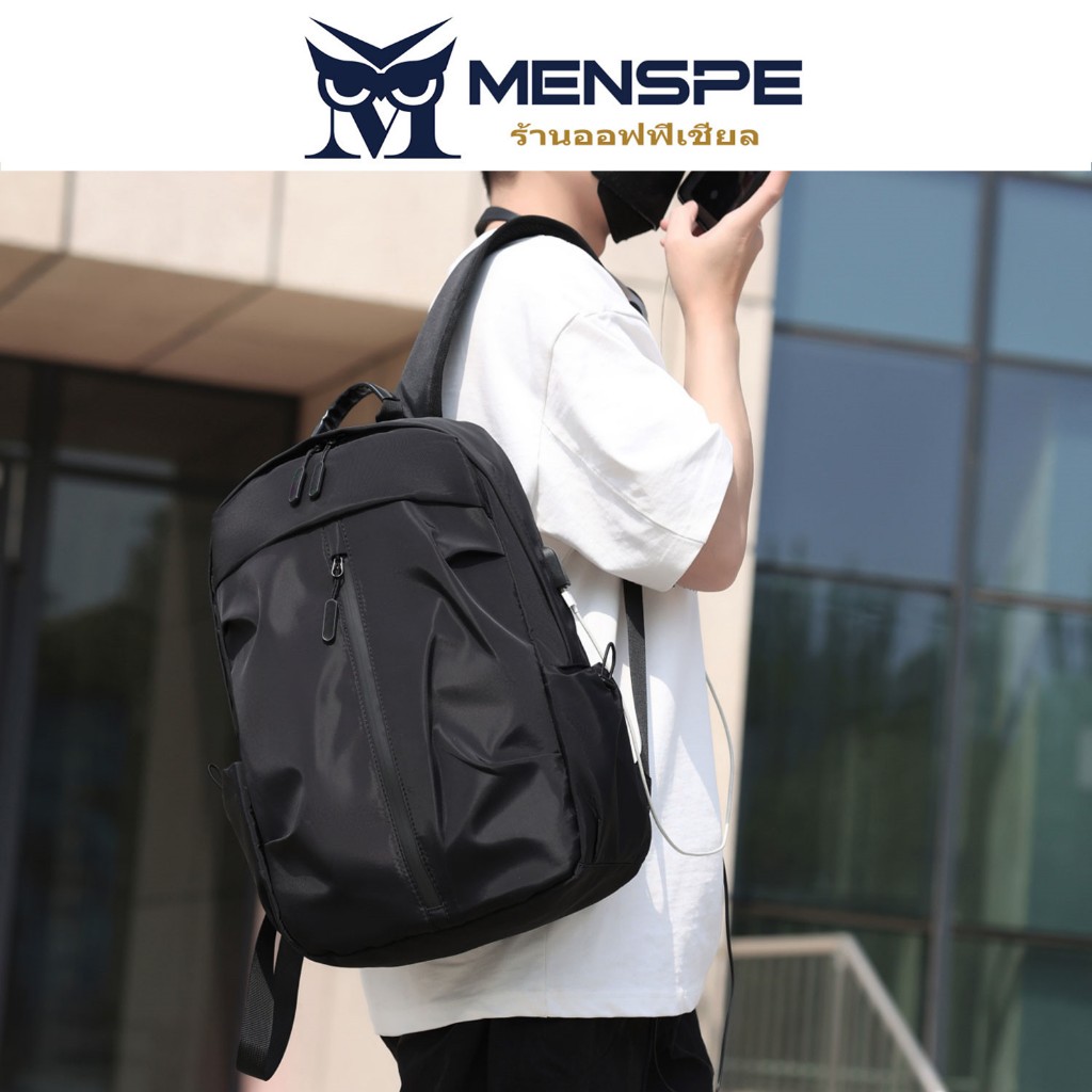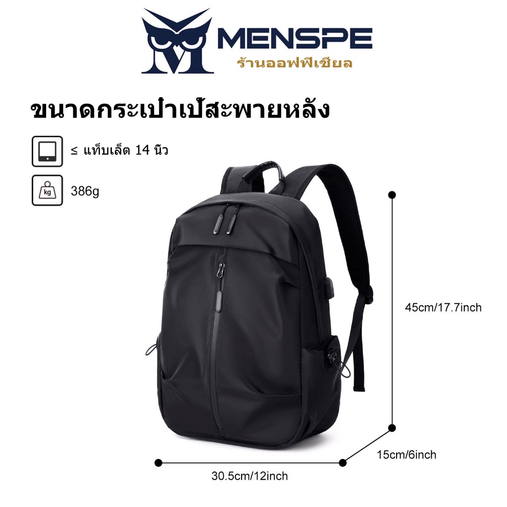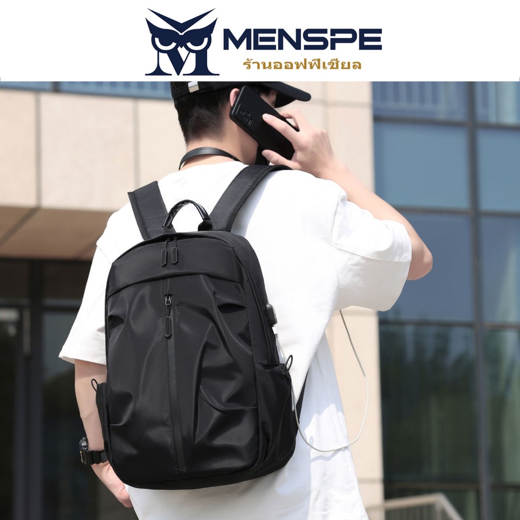 Menspe กระเป๋าเป้สะพายหลังผู้ชาย USB ชาร์จกระเป๋าเป้สะพายหลังแล็ปท็อปกระเป๋าเป้สะพายหลัง Casual Travel กระเป๋านักเรียน Dacron กระเป๋าเป้สะพายหลังสีทึบ