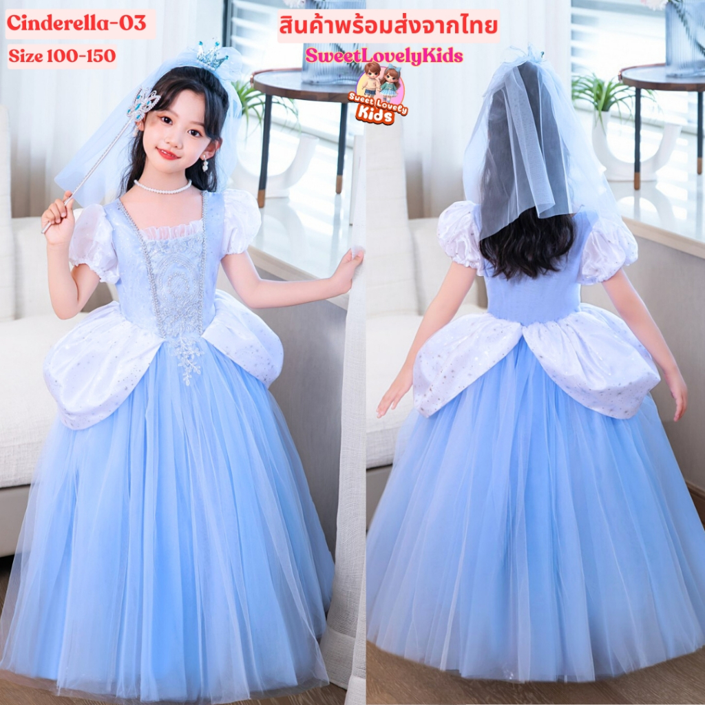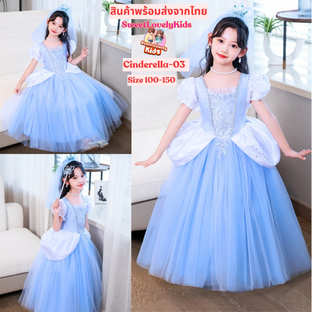 ชุดเจ้าหญิง ซินเดอเรลล่า ชุดเดรส กระโปรง เด็กผู้หญิง สไตล์เจ้าหญิง Cinderella สไตล์ลูกคุณหนู ออกงาน ชุดเดรสแฟนซี