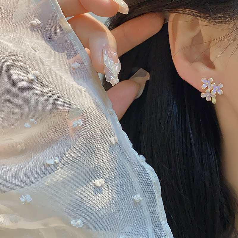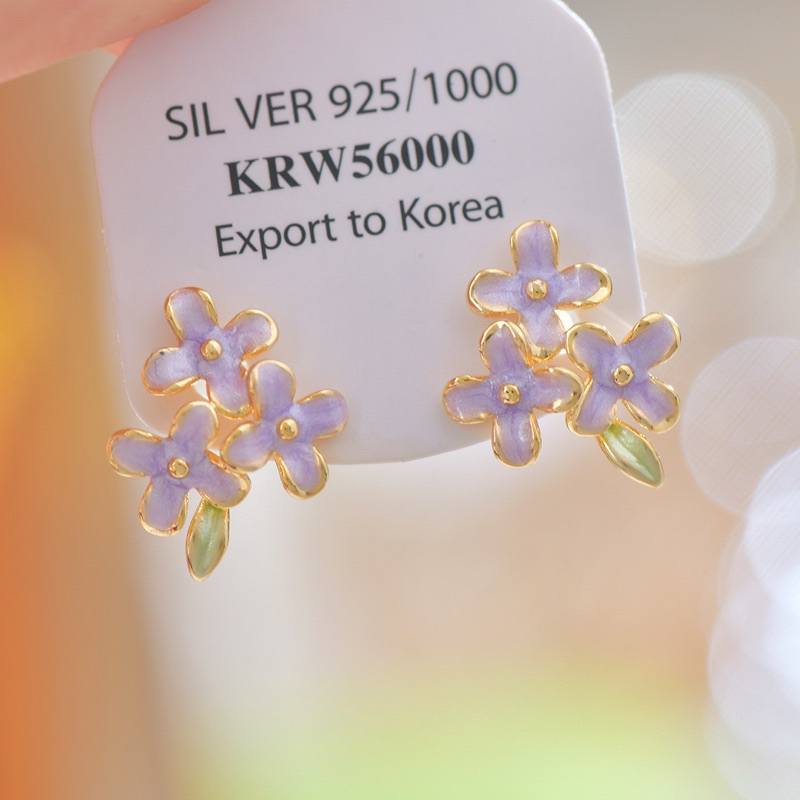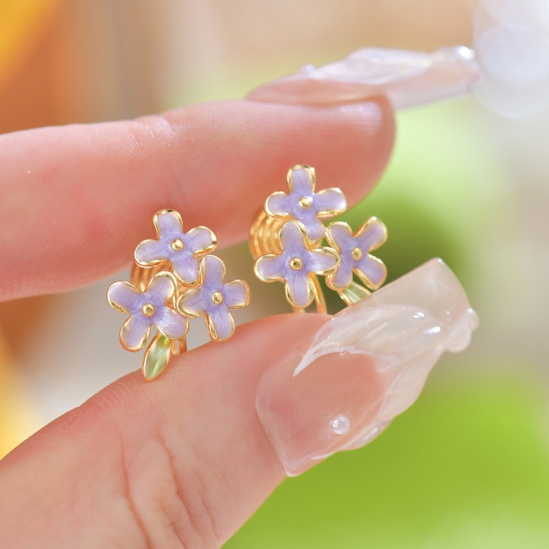 ( ต่างหูหนีบ ขดลวด ) ต่างหูดอกไม้ ต่างหูดอกไม้สีม่วง