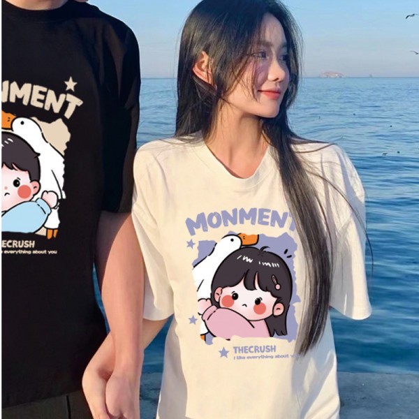 เสื้อคู่แฟน Oversize สไตล์เกาหลี เสื้อยืดโอเวอร์ไซส์แขนสั้นคู่รัก ใส่ได้ทั้งชายและหญิง
