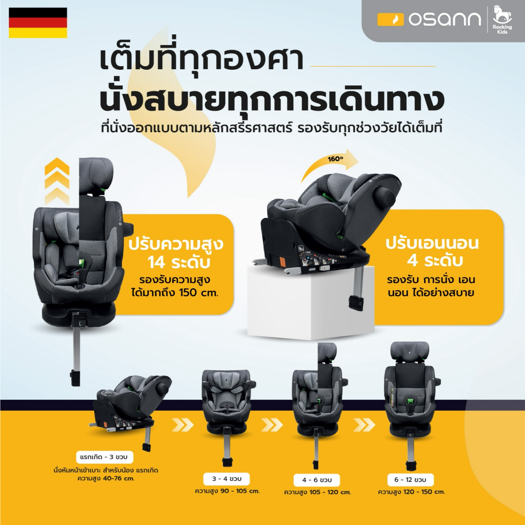 คาร์ซีท Osann รุ่น One360 SL มาตรฐานความปลอดภัยสูงสุดจากยุโรป 0-12 ขวบ