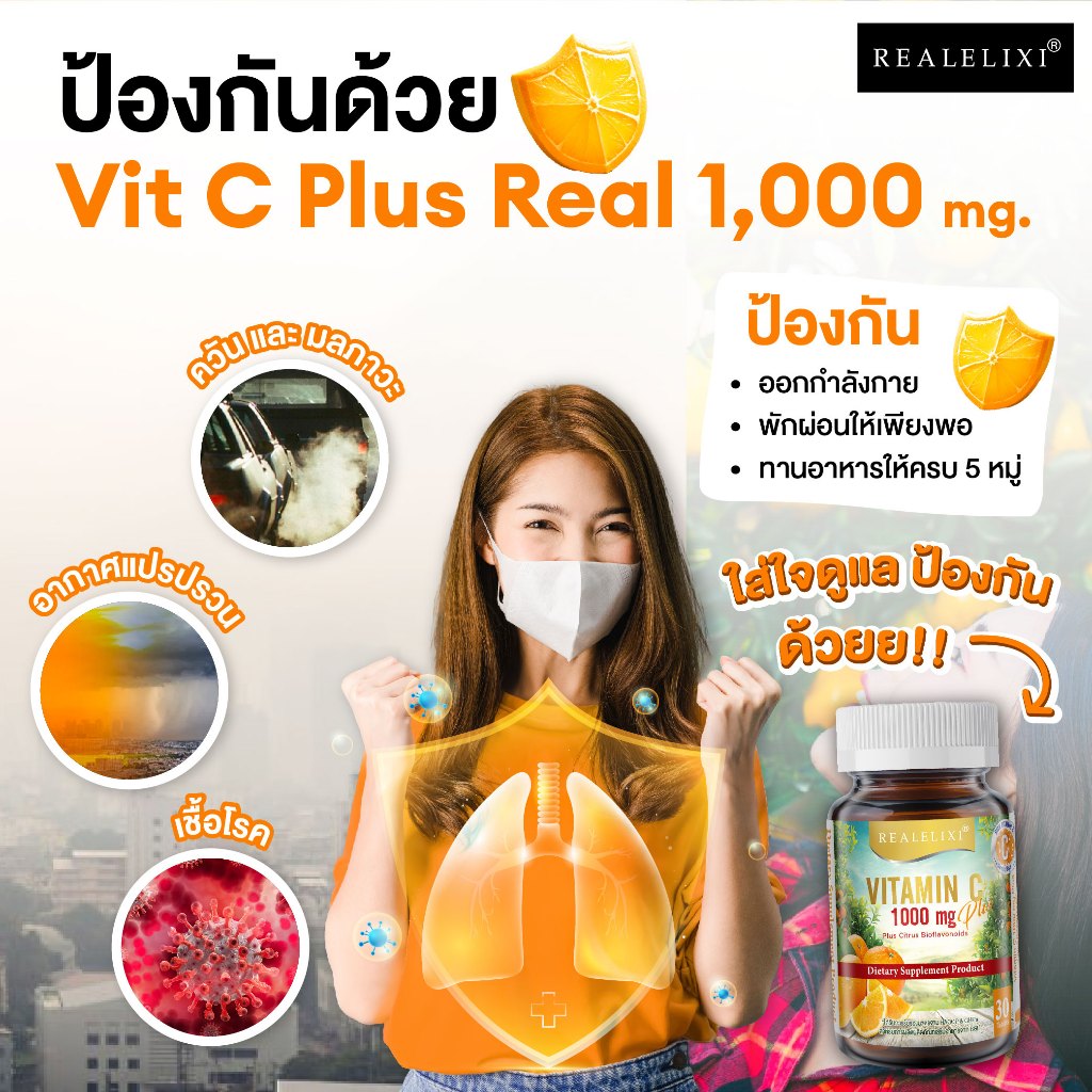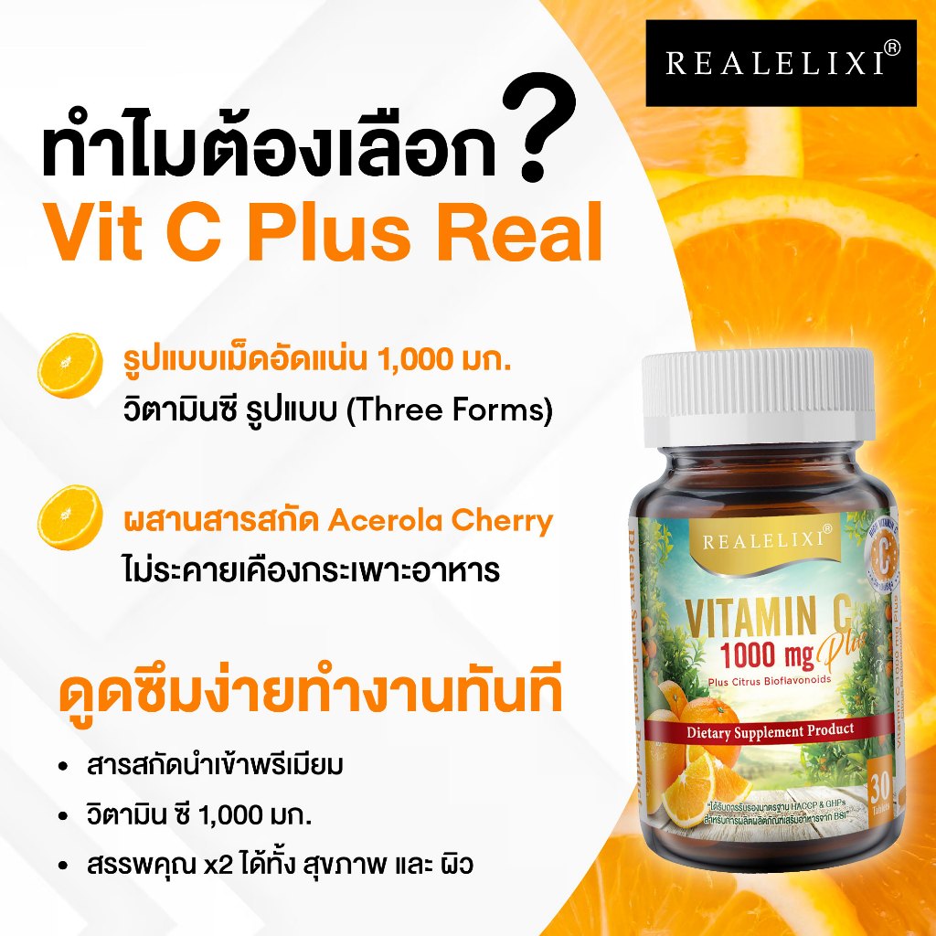 [โปร 2 ขวด] REALELIXI Vitamin C 1000 mg. plus Citrus Bioflavonoids บรรจุ 30 เม็ด บูสผิว บูสภูมิคุ้มกัน