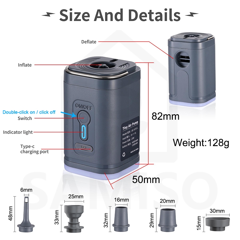 ปั๊มลมไร้สายขนาดเล็กปั๊มลมแบบพกพาพร้อมไฟตั้งแคมป์พองอย่างรวดเร็วสําหรับแผ่นนอนที่นอนลมของเล่นสระว่ายน้ําลอยแหวนว่ายน้ําถุงเก็บสูญญาก