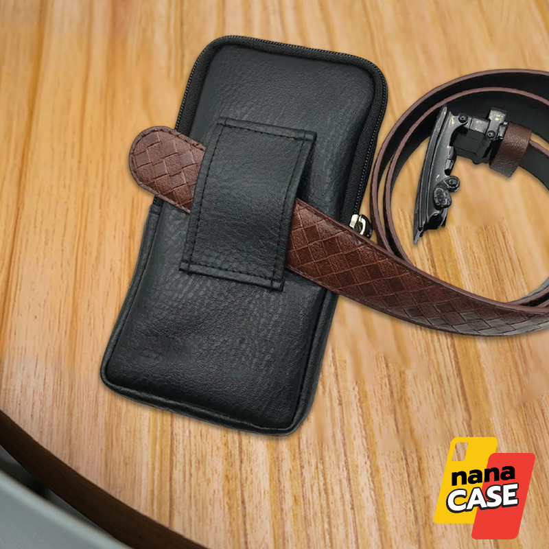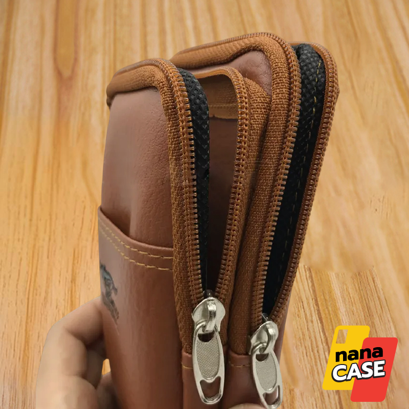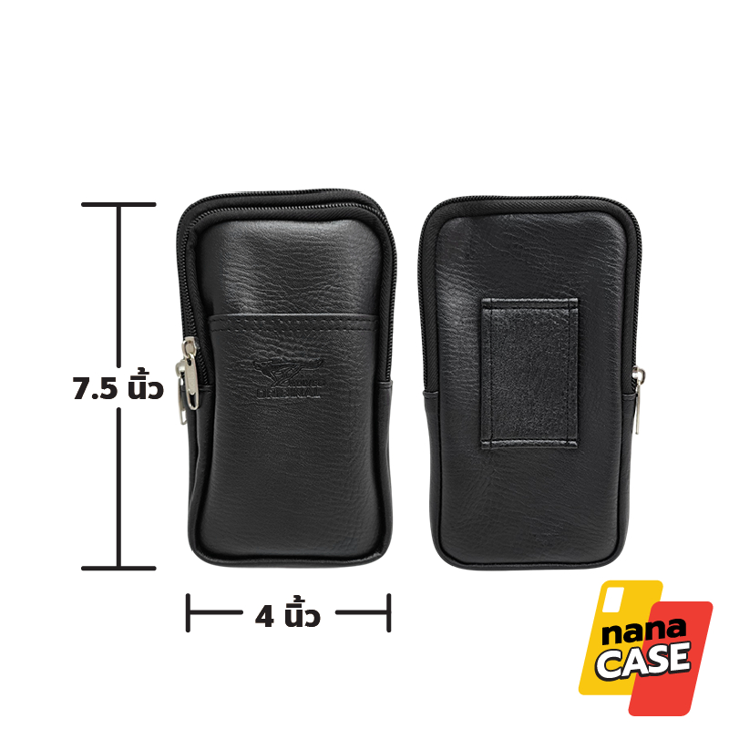กระเป๋าหนังคาดเอวใส่มือถือ V50 สอดเข็มขัดได้ 3 ช่อง ช่องหน้าหยิบง่าย 1, แบบซิบ 2 ช่อง แนวตั้ง ใส่มือถือได้ 7 นิ้ว