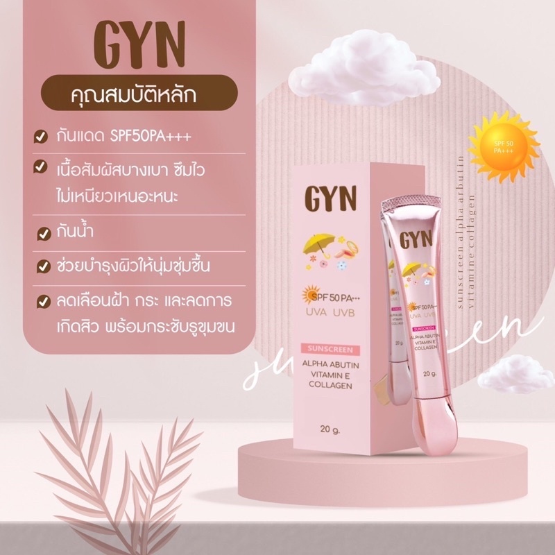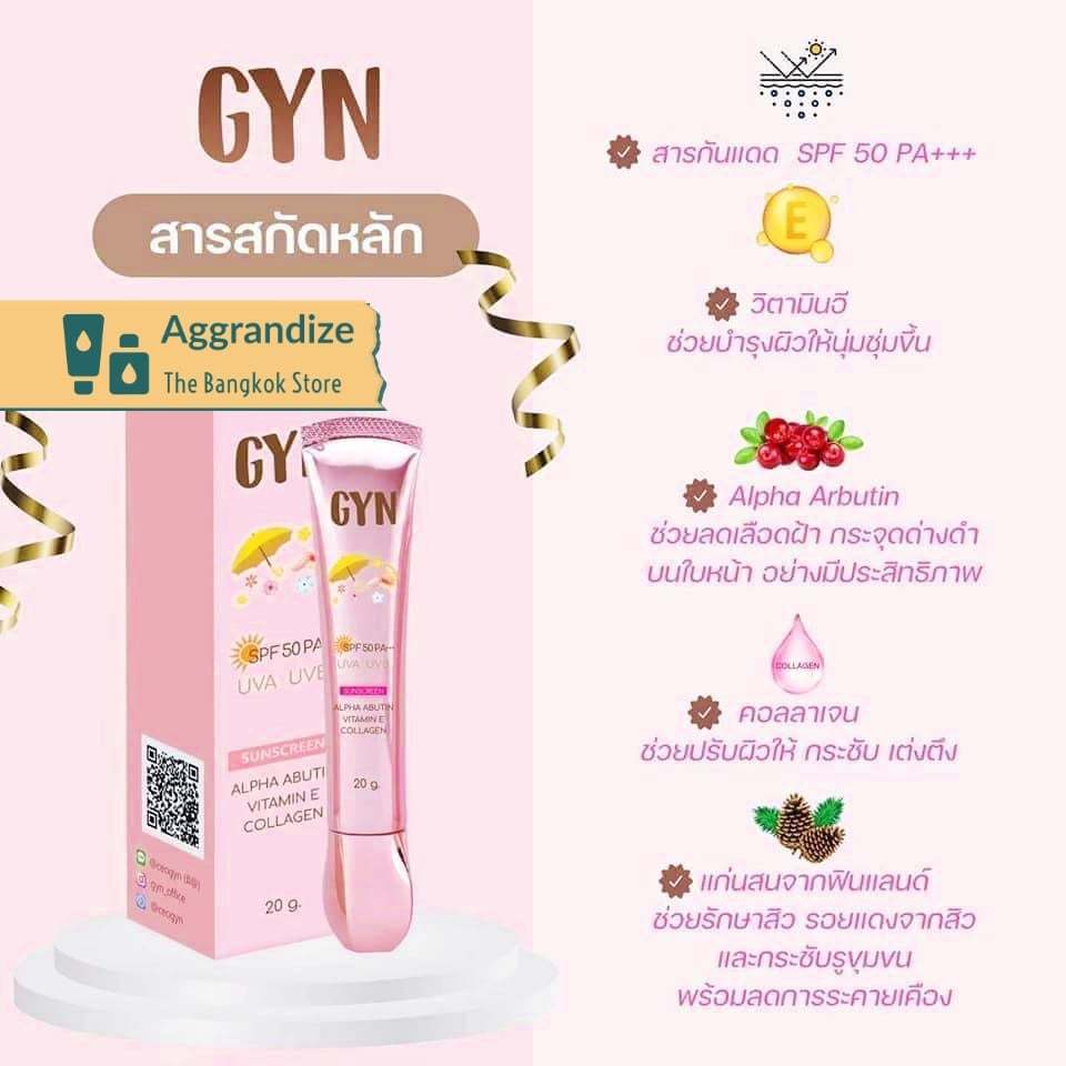 กันแดดจิน สูตรผสมรองพื้นและสูตรออร์แกนิค GYN sunscreen & organic sunscreen SPF 50PA+++ 1หลอด(20กรัม)