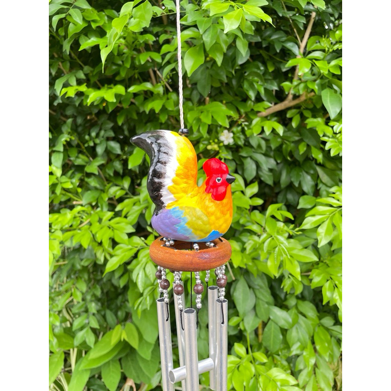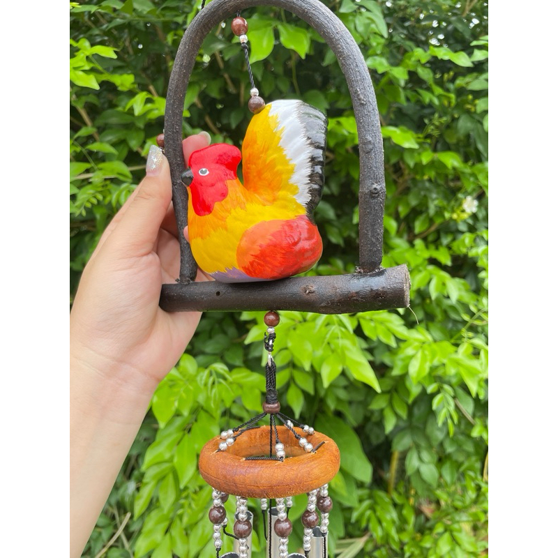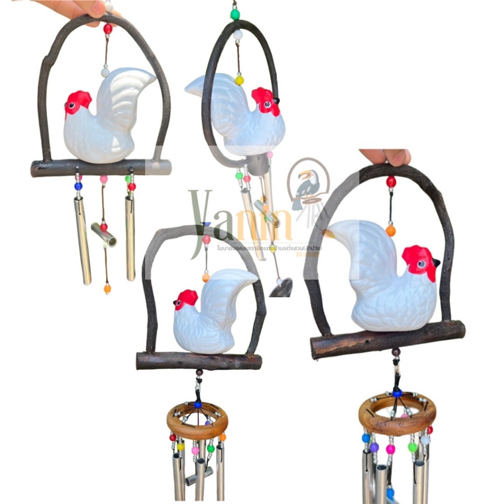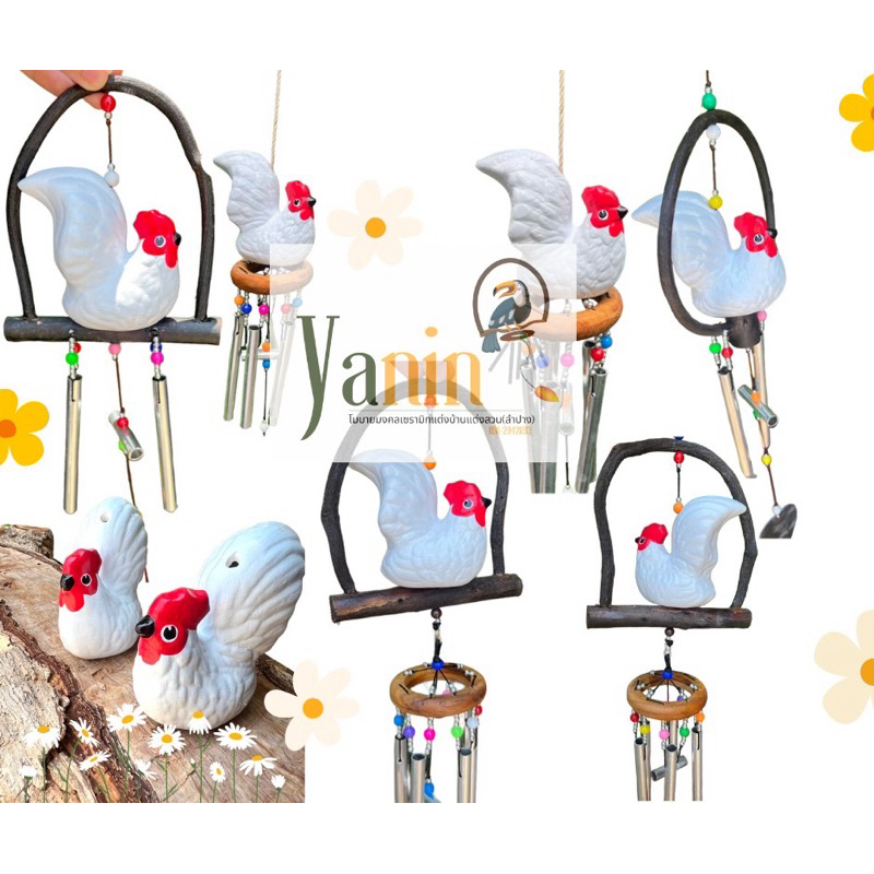 โมบายแขวนเซรามิก ตุ๊กตาไก่ ขาวเซรามิค กรงไม้(5แท่ง,2แท่ง)(พร้อมส่ง)แต่งบ้านแต่งสวน
