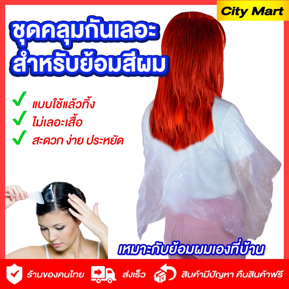ผ้าคลุมใส PVCกันน้ำ สำหรับใส่ย้อมผม/ตัดผ ชุดคลุมกันเลอะ สำหรับย้อมสีผมด้วยตนเอง ยาย้อมผมใช้แล้วทิ้ง