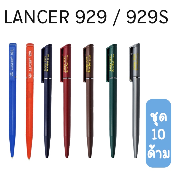 (แพ็ก10 ด้าม) Lancer ปากกาลูกลื่นหมุน แลนเซอร์ 0.5 มม รุ่น 929 / 929S