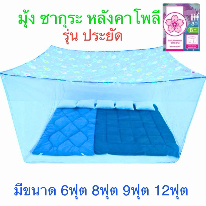 มุ้งกันยุง มุ้ง4หู มุ้งกันยุงสินค้าไทย ขนาด 6ฟุต 8ฟุต 9ฟุต หลังคาลาย