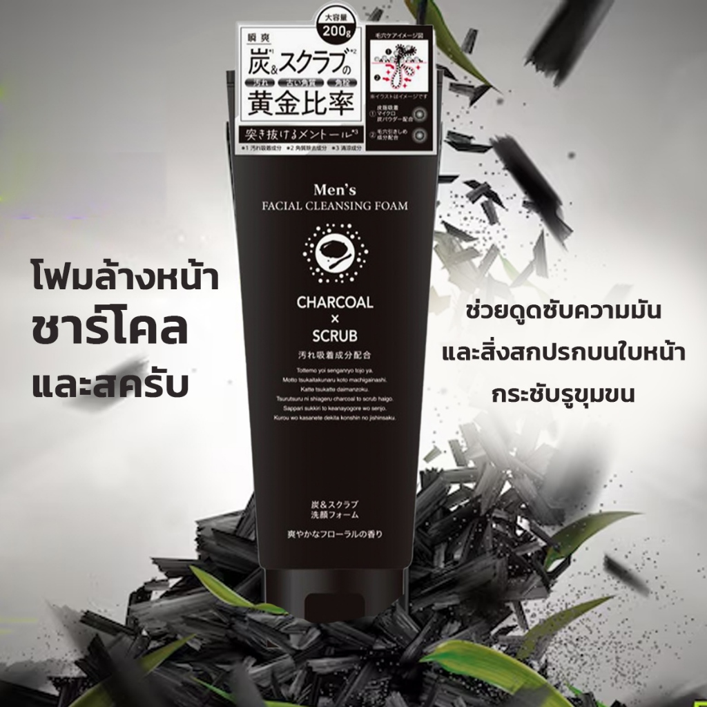 โฟมล้างหน้าผู้ชายจากญี่ปุ่น Kumano Charcoal x SCRUB Facial Wash ดูดซับสิ่งสกปรกอย่างล้ำลึก 200g