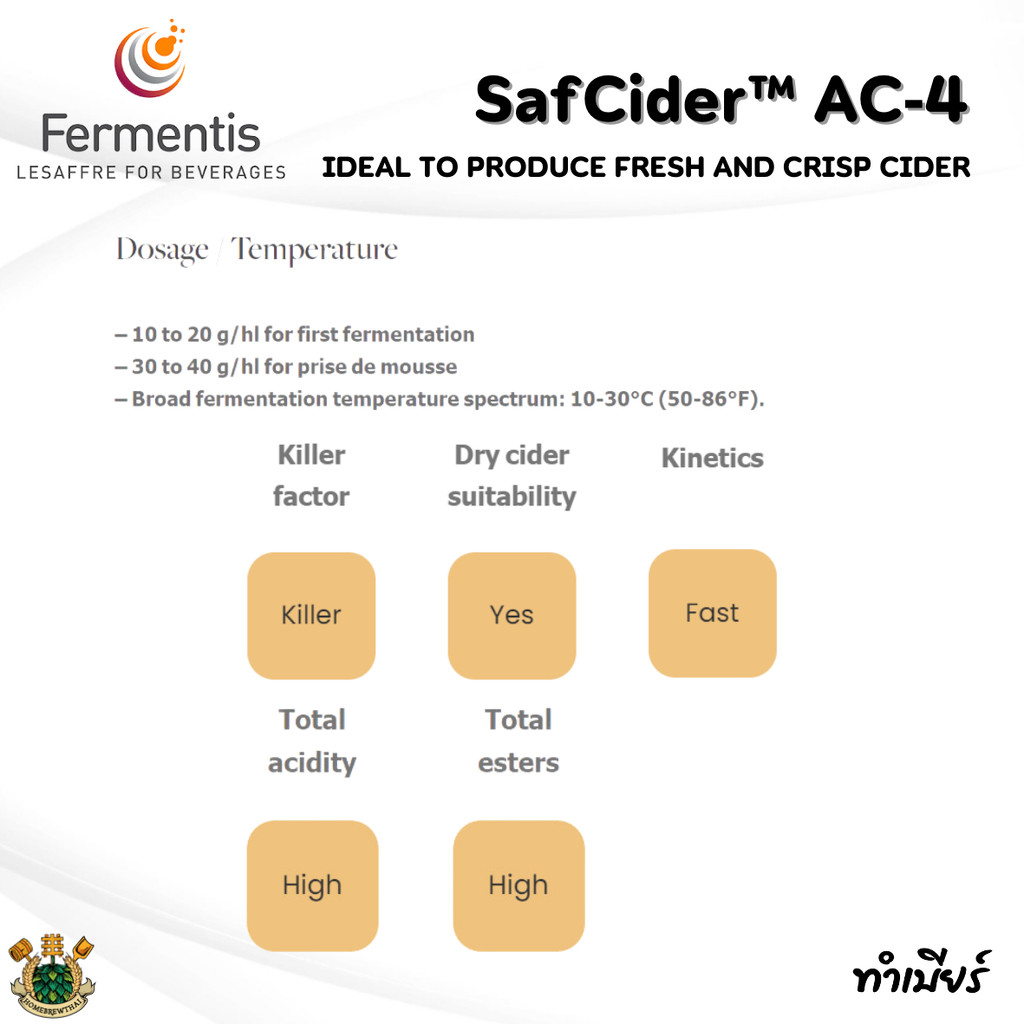 Fermentis SafCider™ AC‑4 Yeast (่ยีสต์) 5g