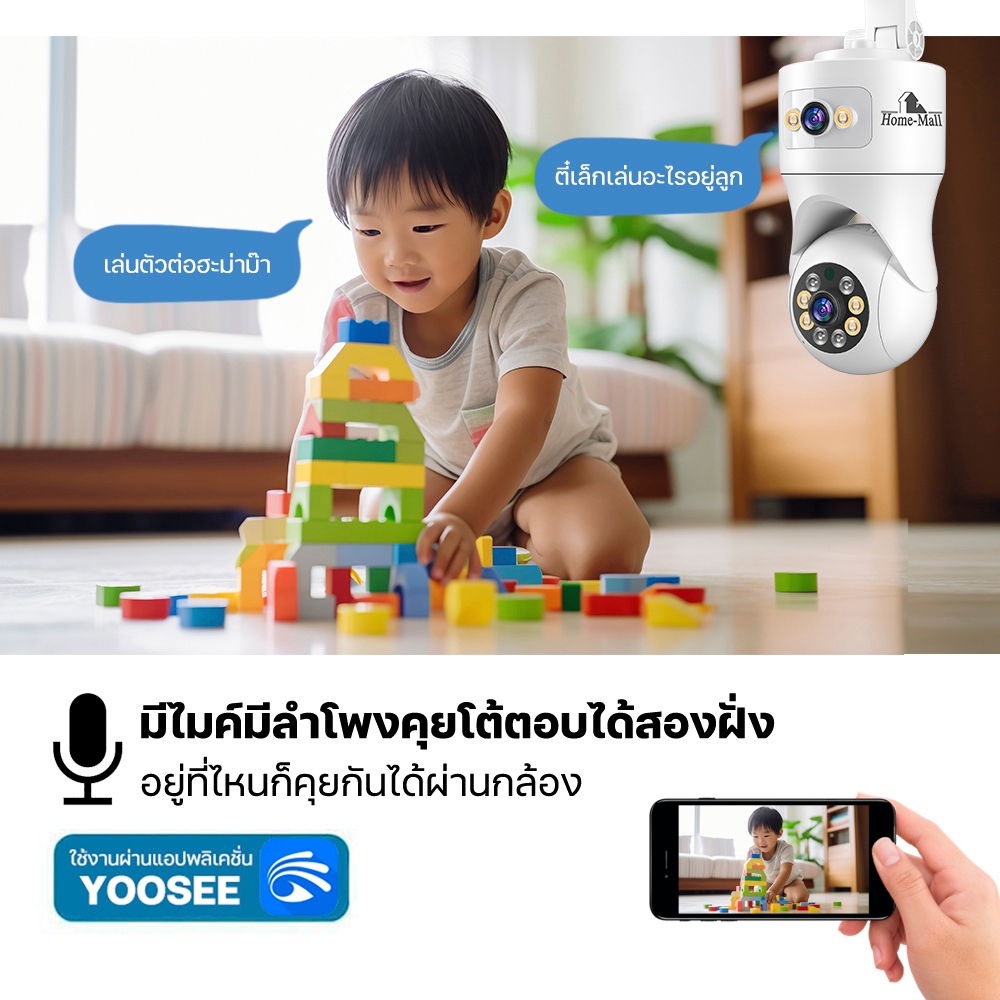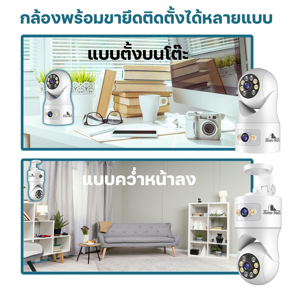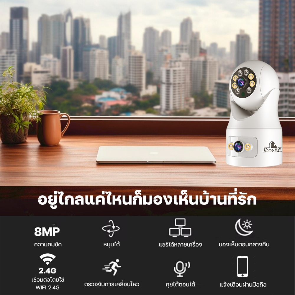 HOME-MALL กล้องวงจรปิดติดตั้งภายใน เชื่อมต่อWIFI 2.4G คมชัด 8MP ตรวจจับการเคลื่อนไหว มองเห็นตอนมืด