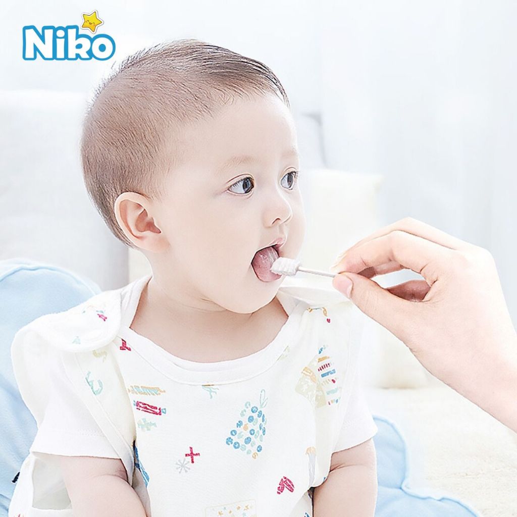 NIKO ผ้าก๊อซทําความสะอาดช่องปากแบบใช้แล้วทิ้ง 30ชิ้น เช็ดฟัน ที่เช็ดลิ้นเด็ก ผ้าก๊อซแท่งแบบหัวเกลียว 3D