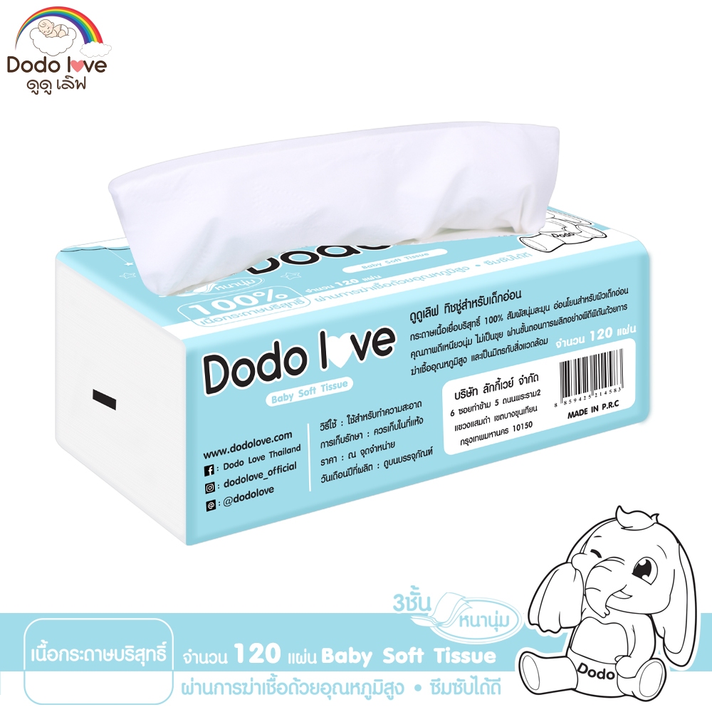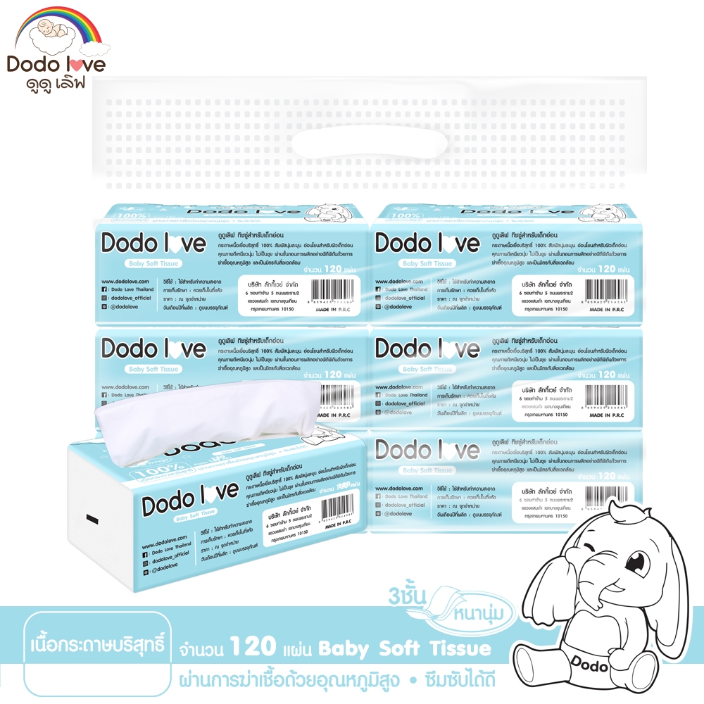 ยกแพ็ค 6 DODO DODOLOVE Baby Cotton Soft Tissue ทิชชู่ สำหรับเด็กอ่อน