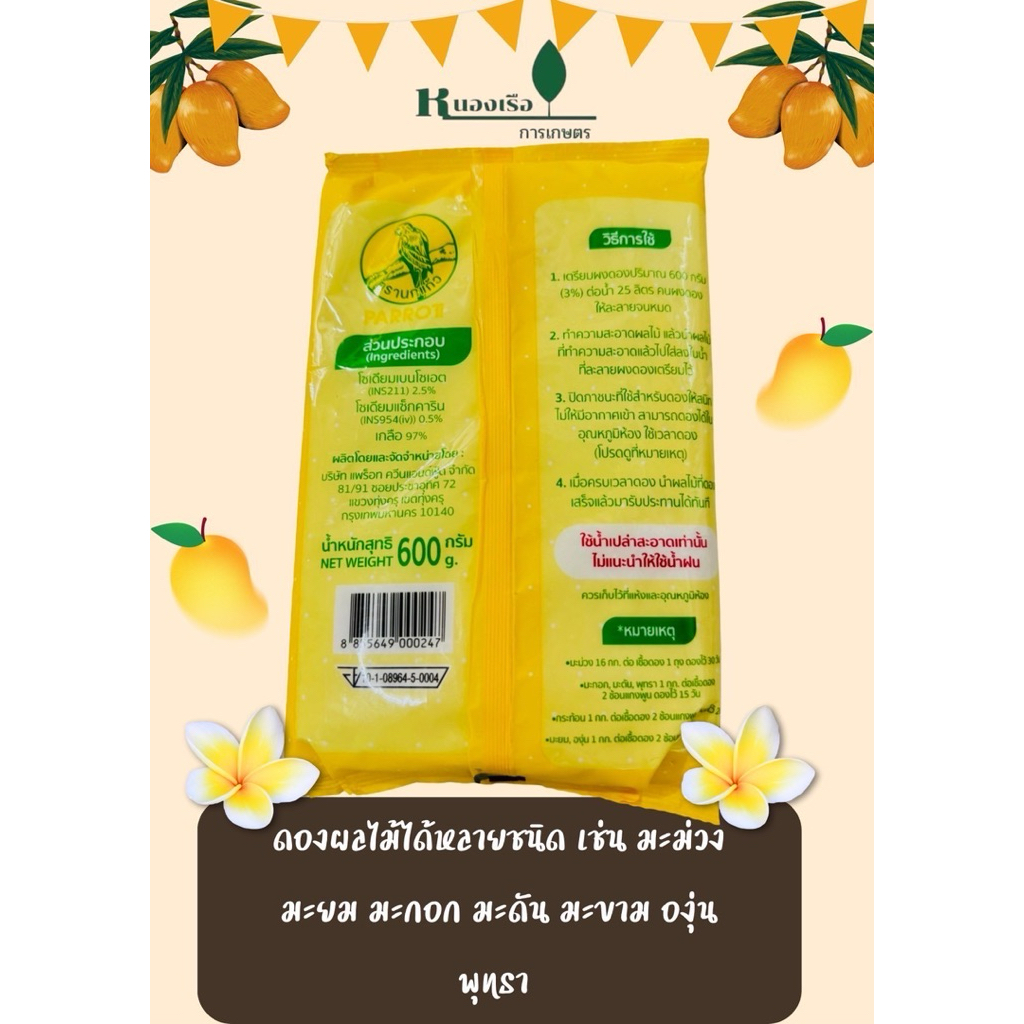 นกแก้ว หัวเชื้อดองมะม่วง 600กรัม ผงดองผลไม้ หัวเชื้อดองผลไม้