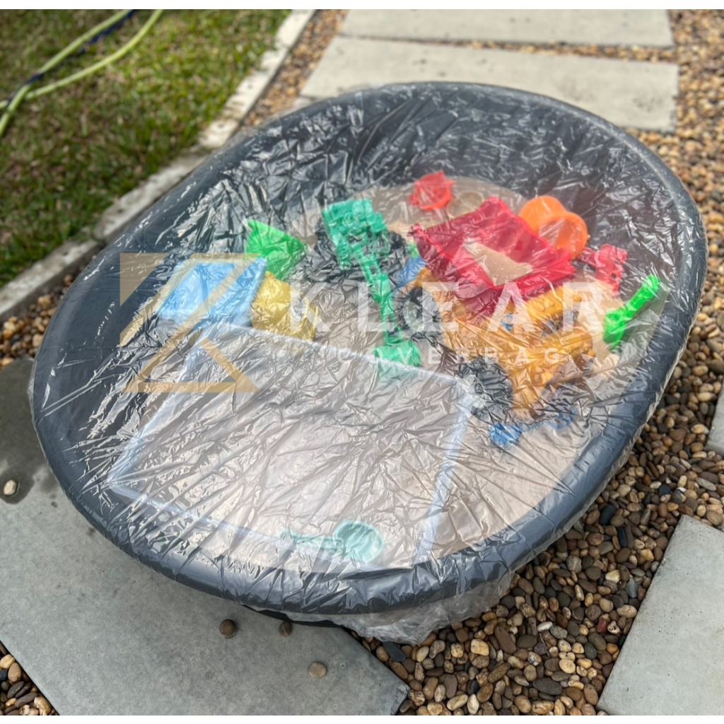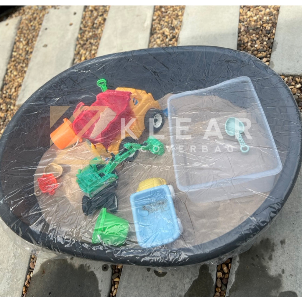 [ วงกลม/วงรี ] พลาสติกใส คลุมกระบะทราย วงกลม/วงรี *ไม่ขายกระบะทราย* กันฝุ่น กันมูลสัตว์ มียางยืด