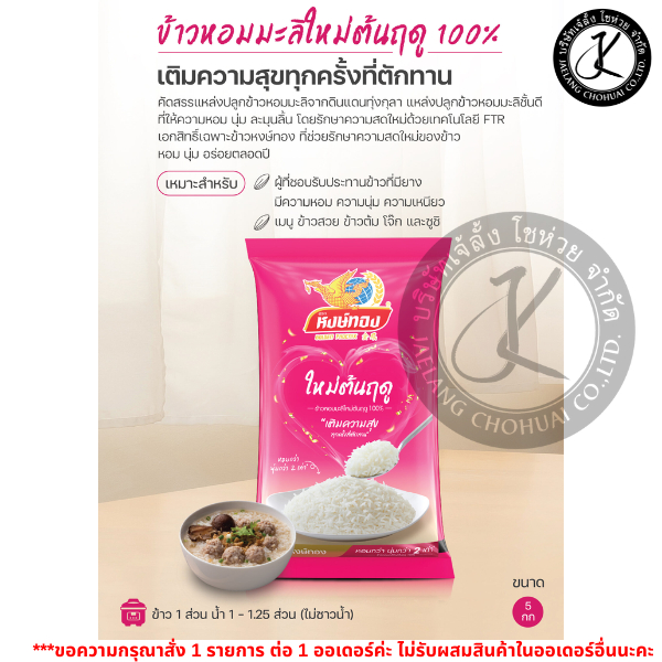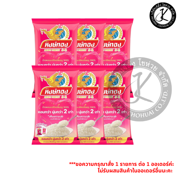 Pack 6 ถุง หงษ์ทอง ข้าวหอมมะลิใหม่ต้นฤดู 100% 5 กิโลกรัม