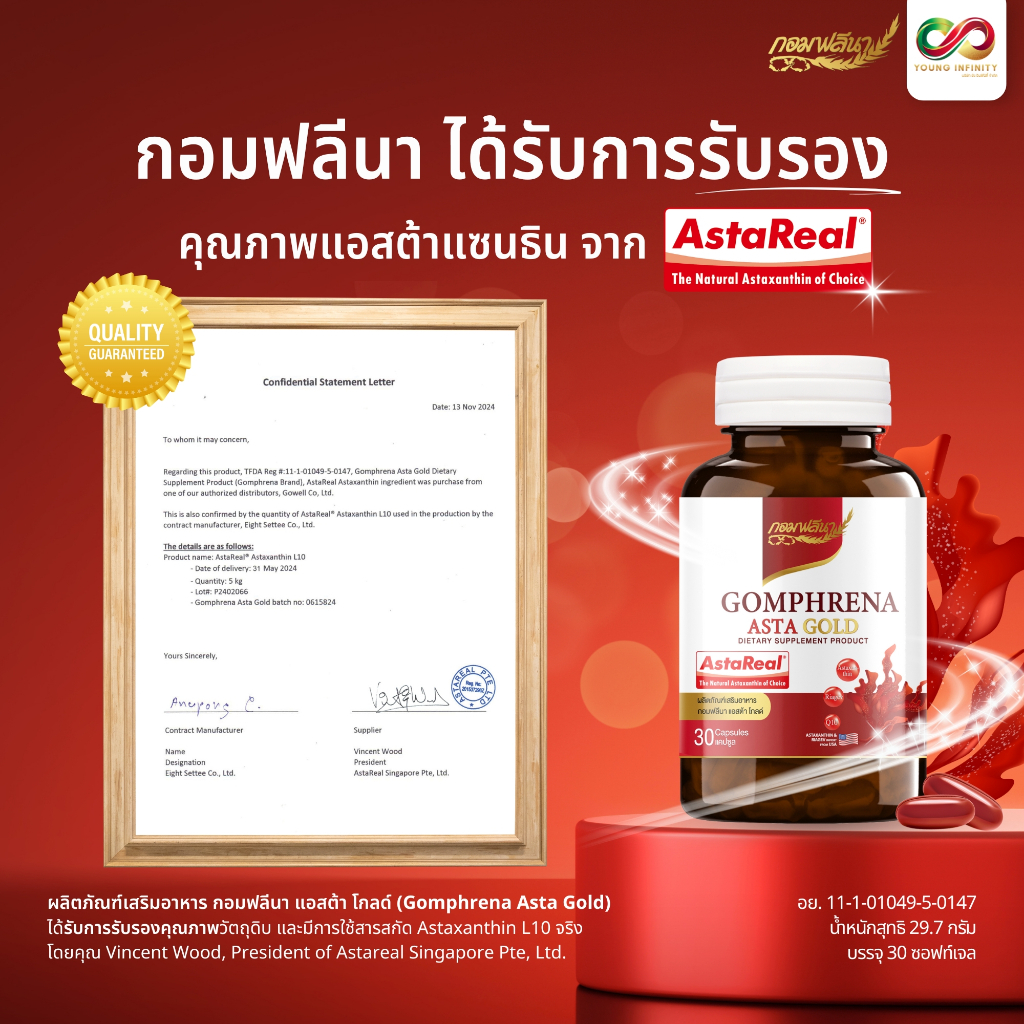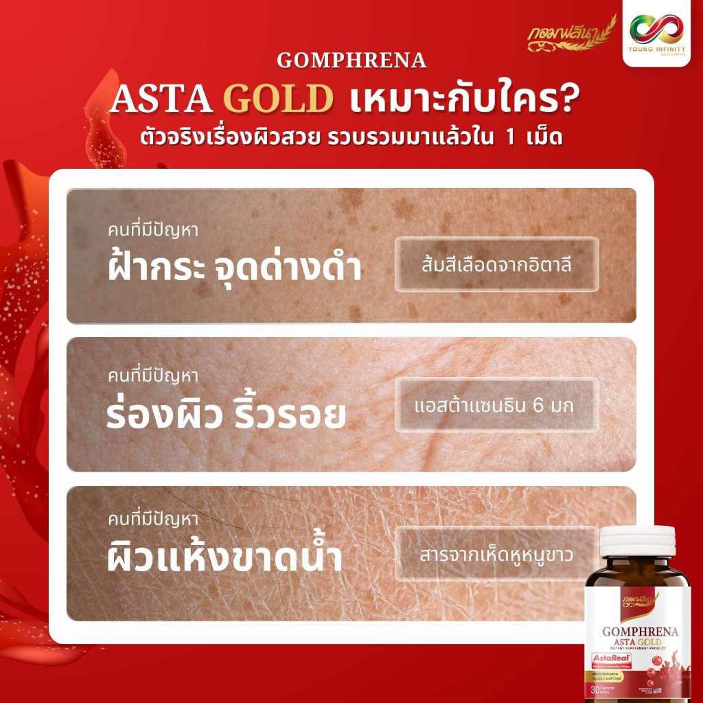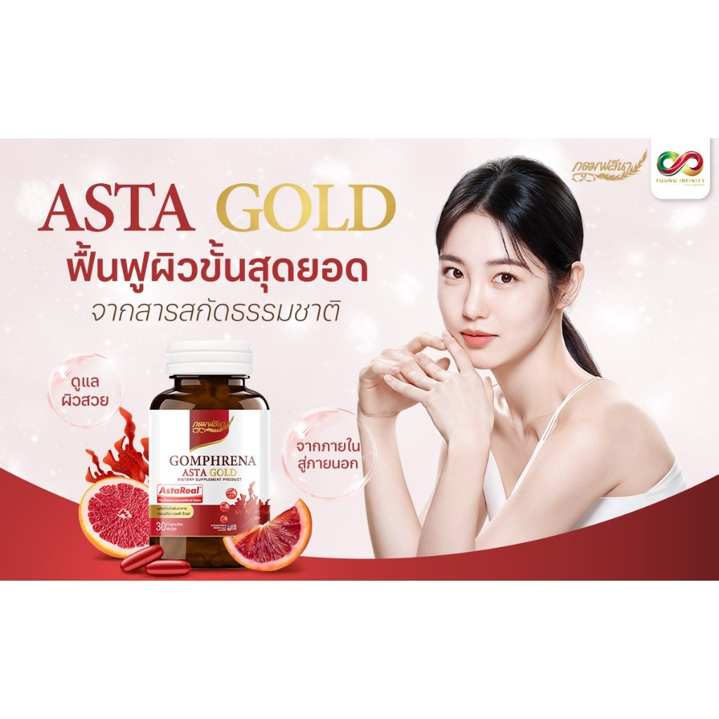 (2 กระปุก)ASTA GOLD AstaReal 6 mg CoQ10 Grape seed oil กอมฟลีนา แอสต้าโกลด์ BBF06/26 ชะลอวัย ผิวใส จุดด่างดำ ต้านริ้วรอย