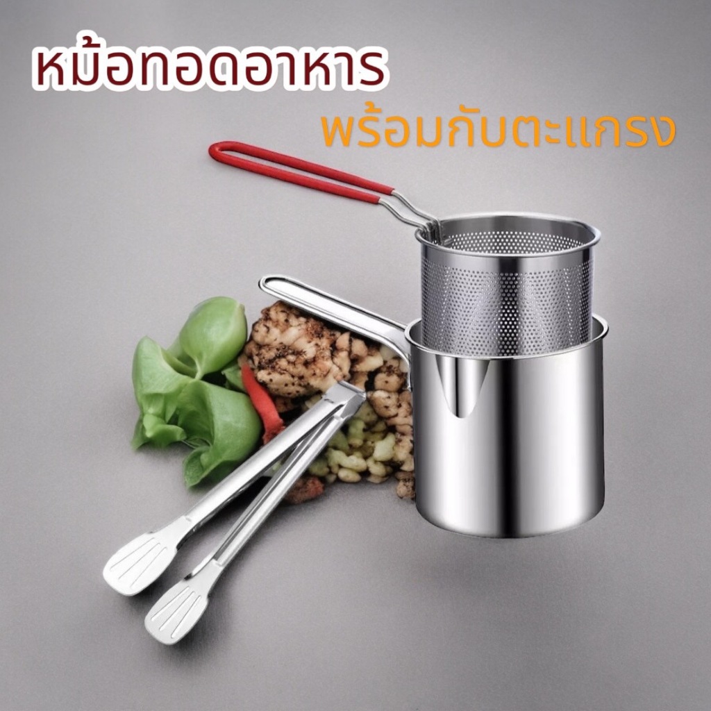 หม้อทอดสแตนเลสพร้อมตะแกรงทอด หม้อทอดเฟรนช์ฟรายส์ PT+TK01และ PT+TK02