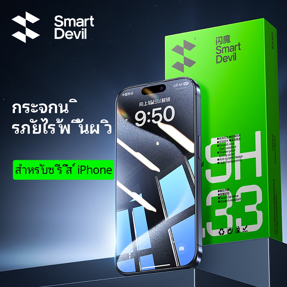 SmartDevil Textureless กระจกนิรภัยสําหรับ iPhone 17/15/13Pro/14Pro Max/12Promax/X/XS/XR/16 Pro Max