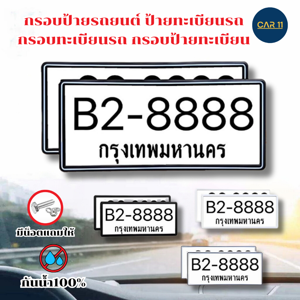 กรอบป้ายรถยนต์ ป้ายทะเบียนรถ กรอบทะเบียนรถ กรอบป้ายทะเบียน กันบังสาด แบบขาวเส้นดำ (1 คู่ หน้ารถ+หลังรถ พร้อมน็อต)
