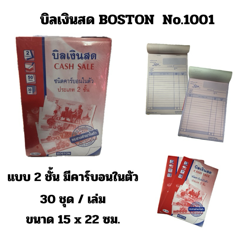 บิลเงินสด BOSTON คาร์บอนในตัว 2 ชั้น No.1001 (แพ็ค10เล่ม , 5เล่ม)พร้อมส่ง