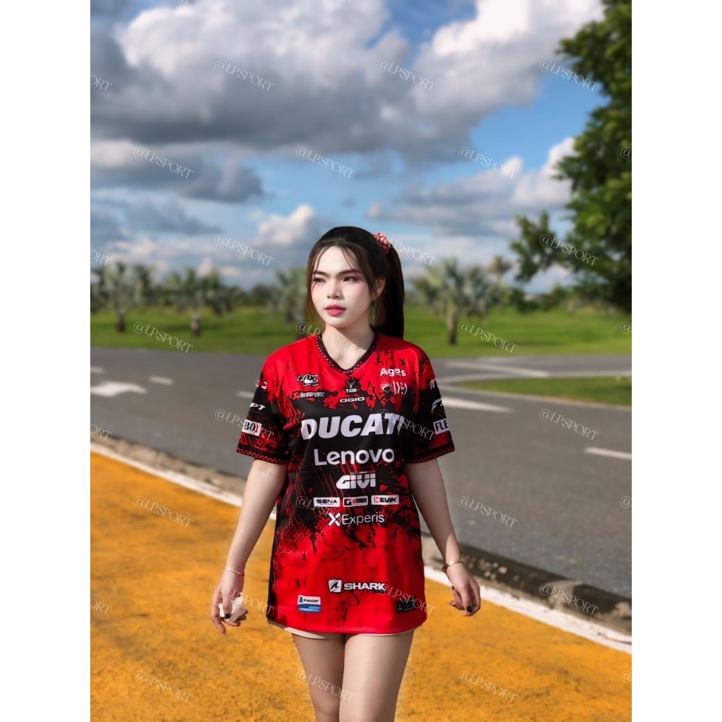 เสื้อลายรถแข่ง แขนสั้น เนื้อผ้าไมโครใส่ได้ทั้งผู้หญิงและผู้ชาย