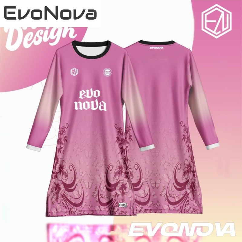 Evonova Coquette ริบบิ้นโบว์สีชมพูพรีเมี่ยมย์ muslimah ราคาถูกย์ murah เสื้อแขนยาวไมโครไฟเบอร์กีฬา muslimah ฟรีหมายเลขชื่อที่กำหนดเอง