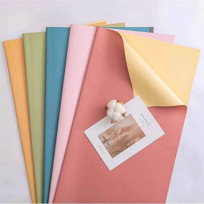 【20แผ่น】บรรจุภัณฑ์ดอกไม้ 58 * 58 ซม. ของขวัญบรรจุภัณฑ์กระดาษสองด้านสี