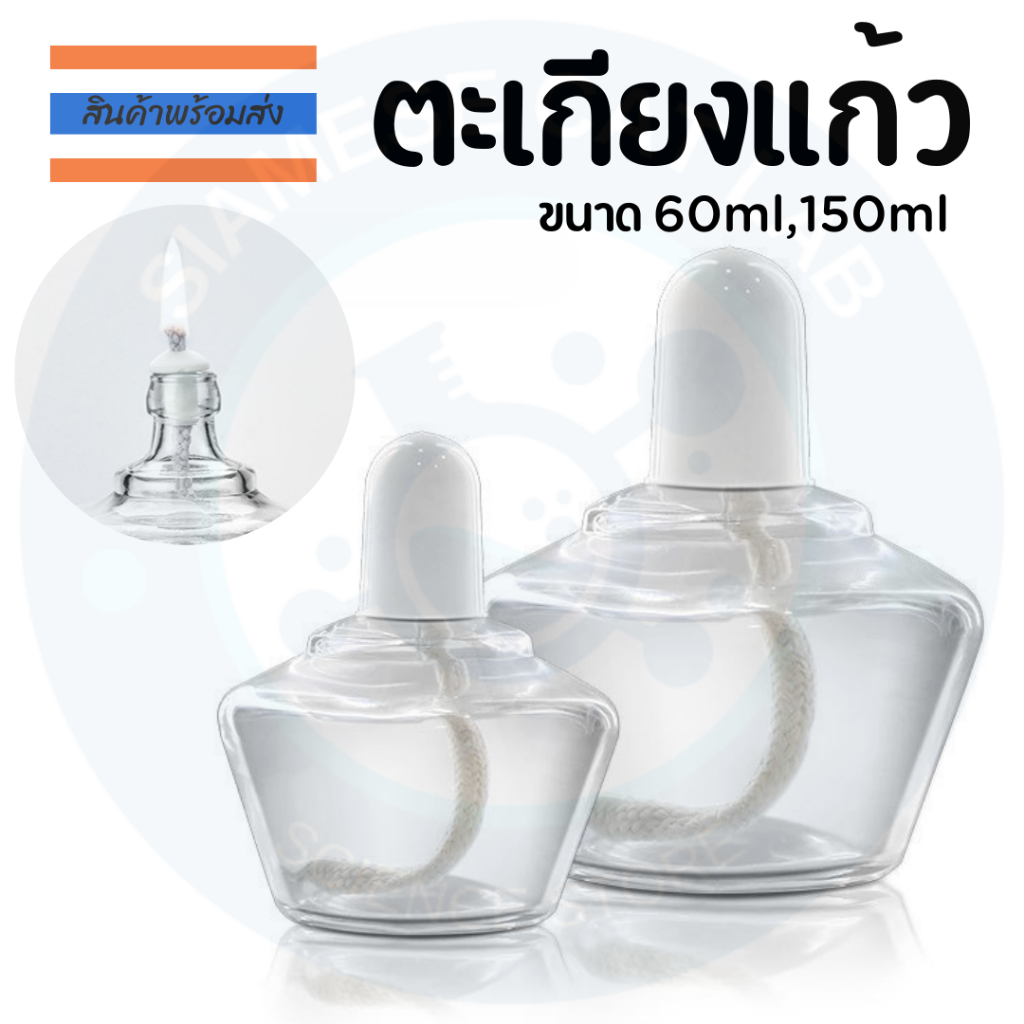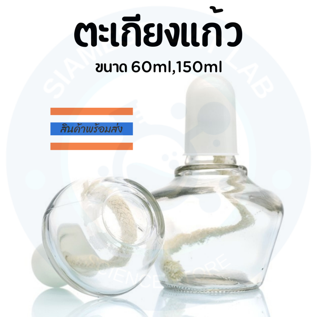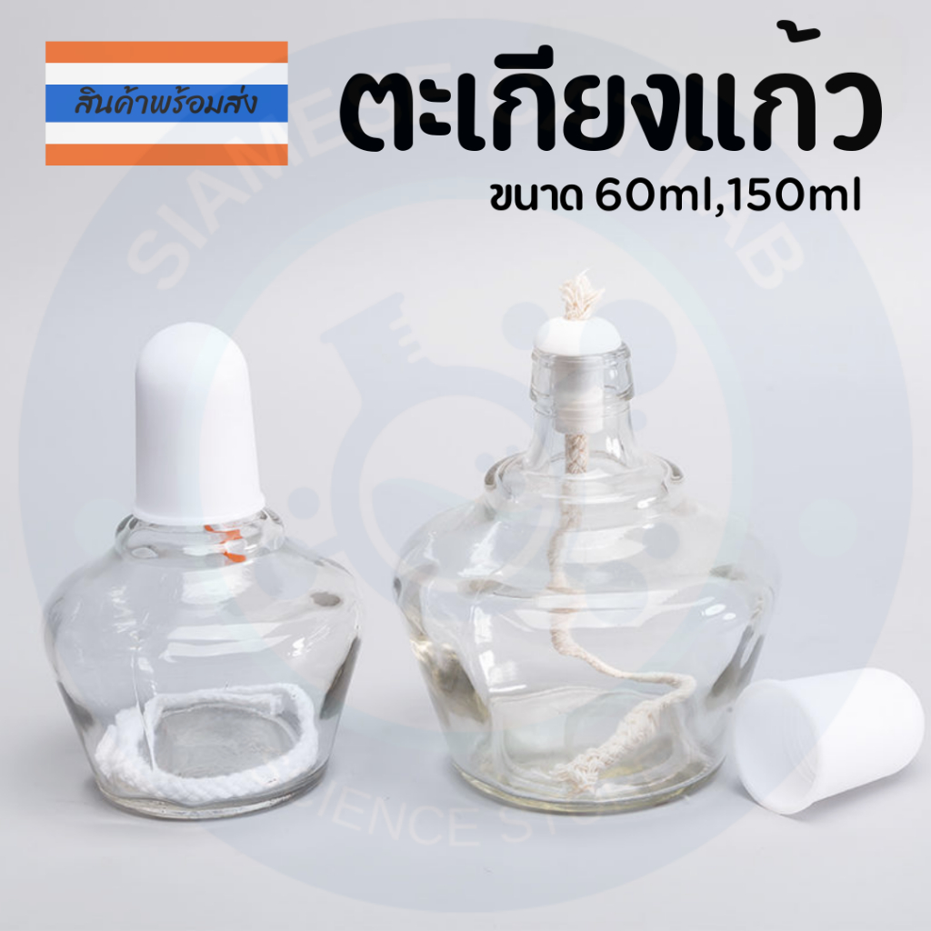 ตะเกียงแอลกอฮอล์พร้อมไส้ Glass Alcohol Lamp ตะเกียงแบบแก้ว ขนาด60ml,150ml