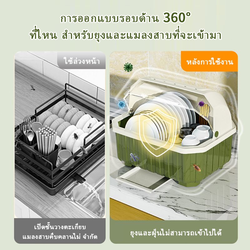 Oh ที่คว่ำจานที่คว่ำชามจานที่วางจานชามที่เก็บจานที่วางจานที่คว่ำจานมีฝาปิด กล่องใส่จานชามกล่องใส่จานกันฝุ่นละออง กันแมลง
