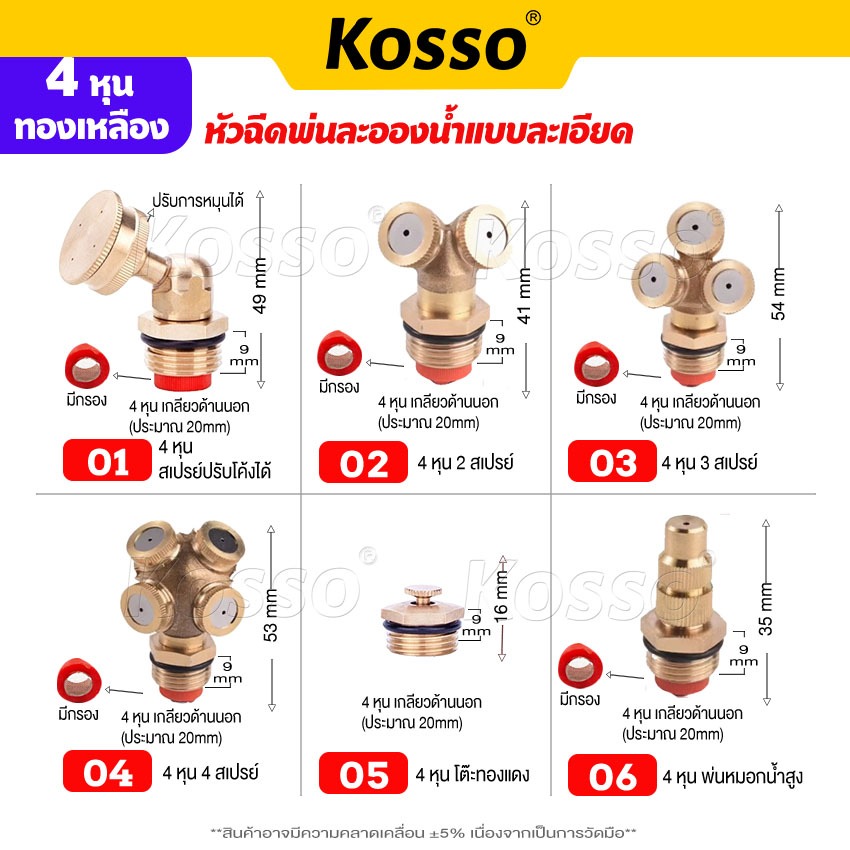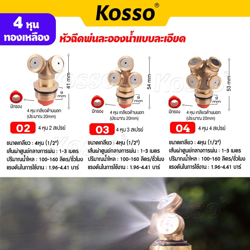 ส่งด่วน Kosso 4หุน (1/2) หัวฉีดพ่นละอองน้ำ สปริงเกอร์รดน้ำ สปริงเกอร์มีตัวกรอง หัวพ่นทองเหลือง