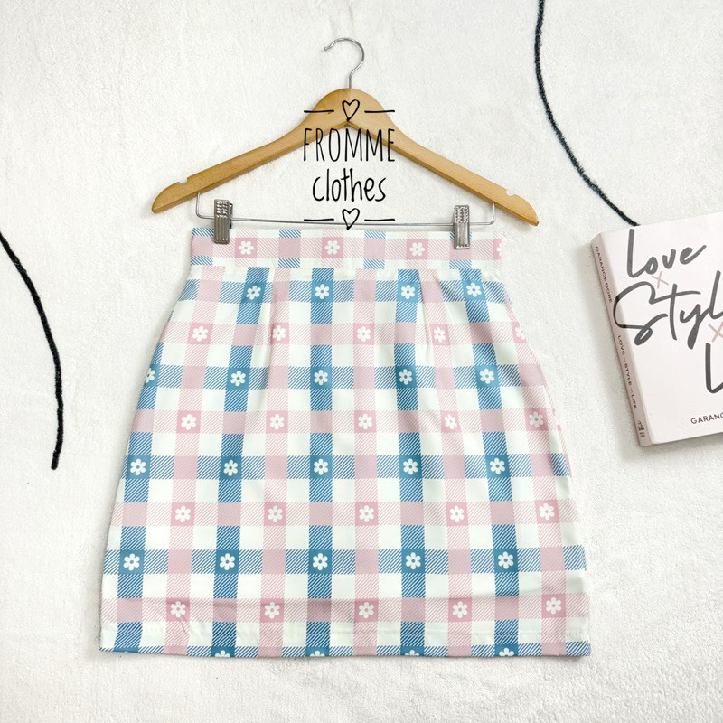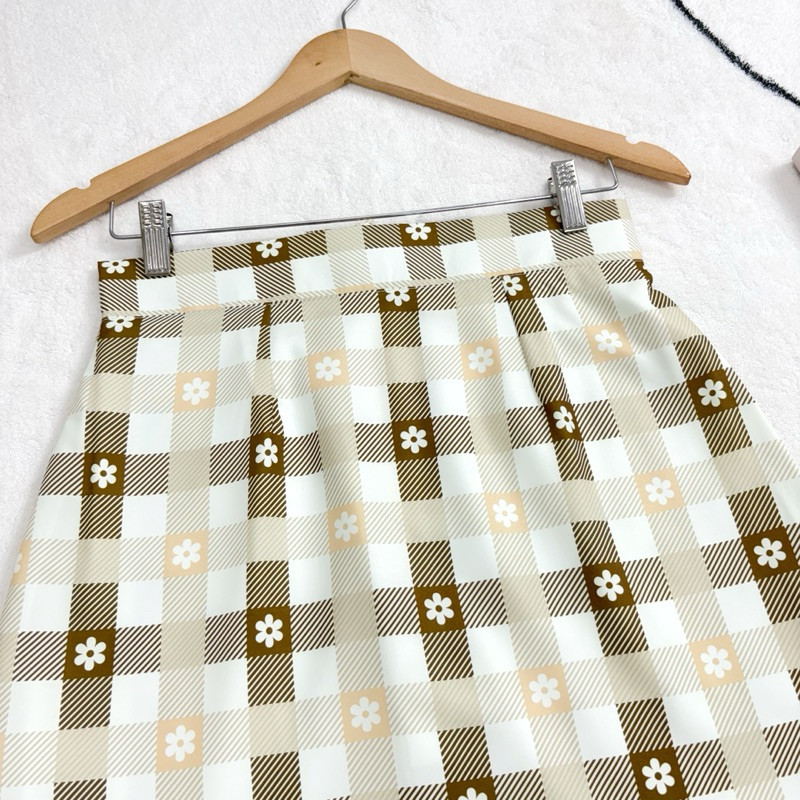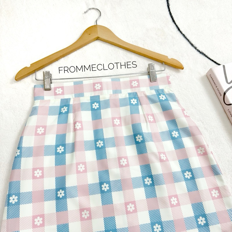 กระโปรงทรงเอลายตารางดอกไม้XS-5XL