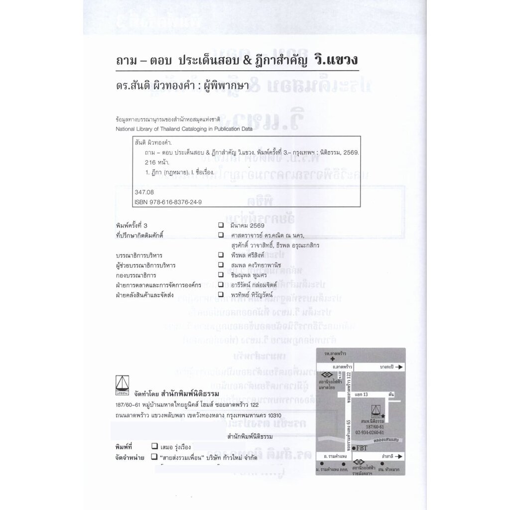(แถมปกใส) ถาม ตอบ ประเด็นสำคัญ & ฎีกาสำคัญ กฎหมาย วิ.แขวง พิมพ์ครั้งที่ 3 สันติ ผิวทองคำ TBK1284 sheetandbook ALX