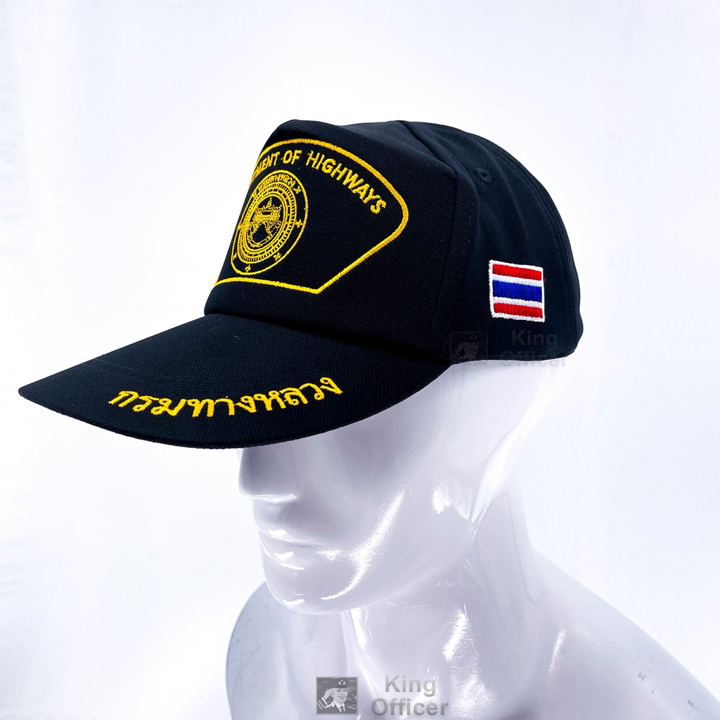 ค่าส่งถูกที่สุด- หมวกกรมทางหลวง สีดำ ปักทั้งใบ ปักตรา กรม ทางหลวง ปรับขนาดได้ ใส่สบาย