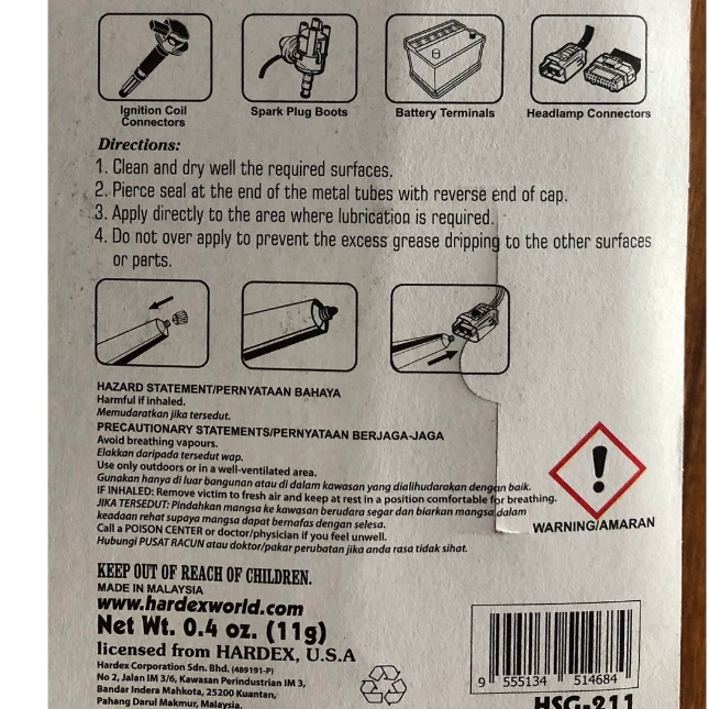 จารบีซิลิโคนหล่อลื่นฉนวนไฟฟ้า ยี่ห้อ HARDEX Silicone Paste Dielectric Grease 11g.