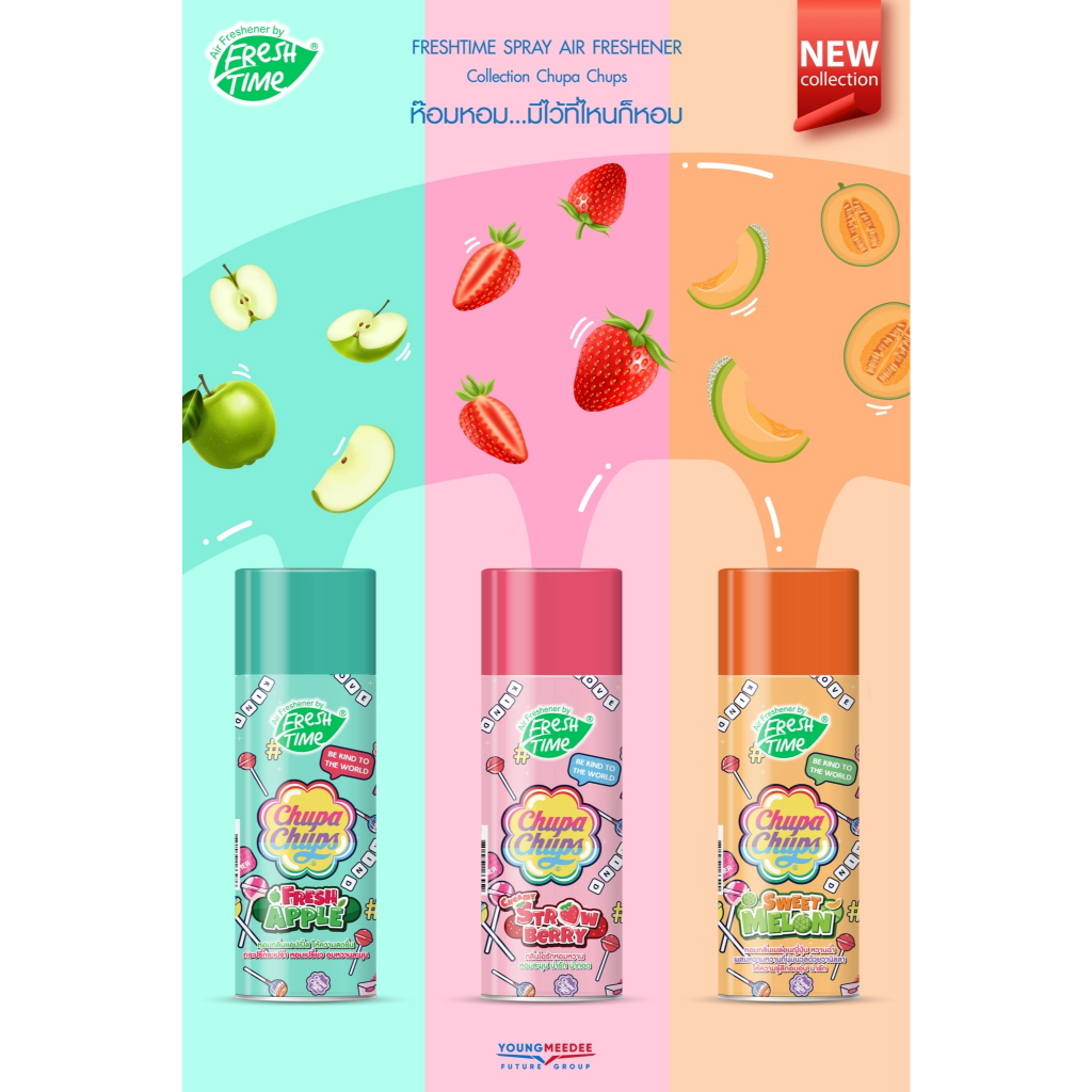 [แพ็ค3ชิ้น] FreshTime X Chupa Chups สเปรย์หอมปรับอากาศ ฉีดห้องหอม น้ำหอมติดห้อง ขนาด 450 มล.
