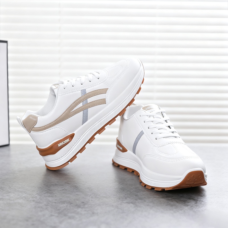 Kawaya รองเท้ากีฬาผู้หญิงสีขาวหนังกันน้ำ รุ่นใหม่ แฟชั่นแมทช์ง่าย พื้นนุ่มกันลื่น เพิ่มความสูงขาเพรียว เหมาะสาวตัวเล็ก