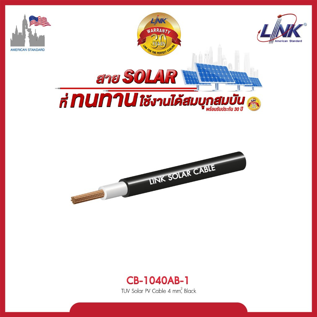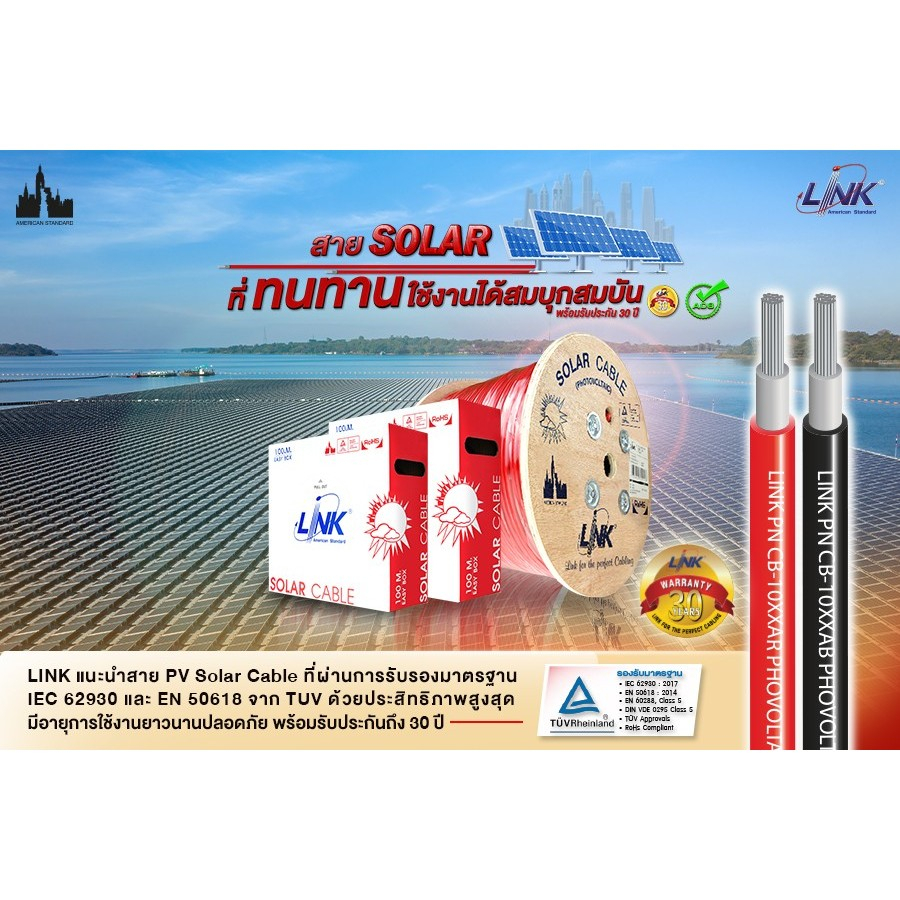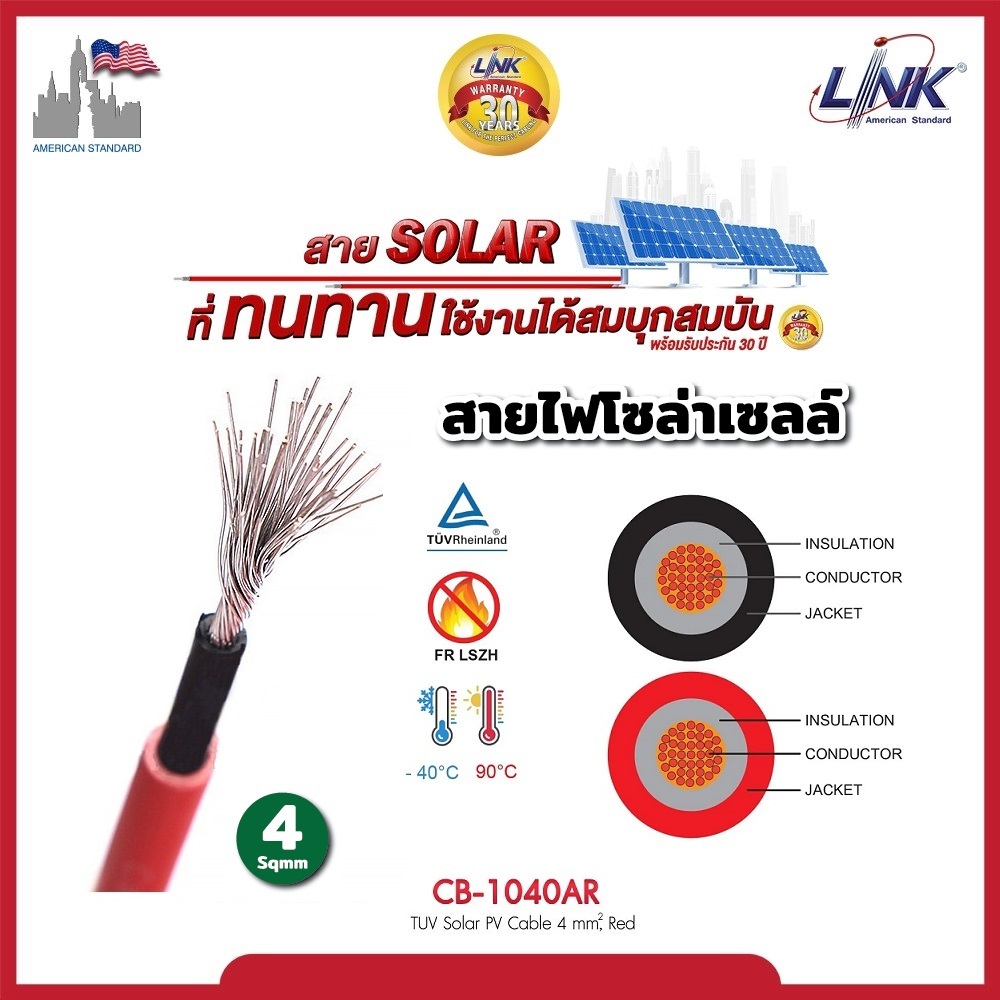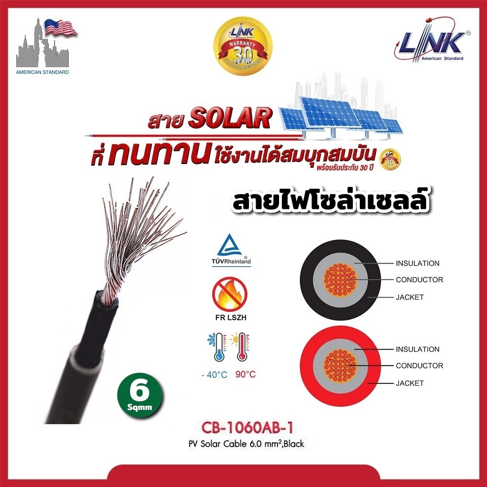 LINK สายไฟโซล่าเซลล์ PV1-F [แบ่งขายเป็นเมตร] เบอร์ 4 และ 6 sq.mm ของแท้ ได้มาตรฐาน รับกระแสไฟได้ดี
