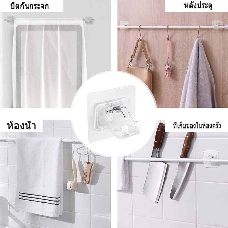 ตะขอยึดราวม่าน ม่านกั้นห้อง คลิปยึดราวม่าน ไม่ต้องเจาะผนัง สำหรับห้องครัว 1แพ้ค 2 ชิ้น 2pcs curtain rod holder