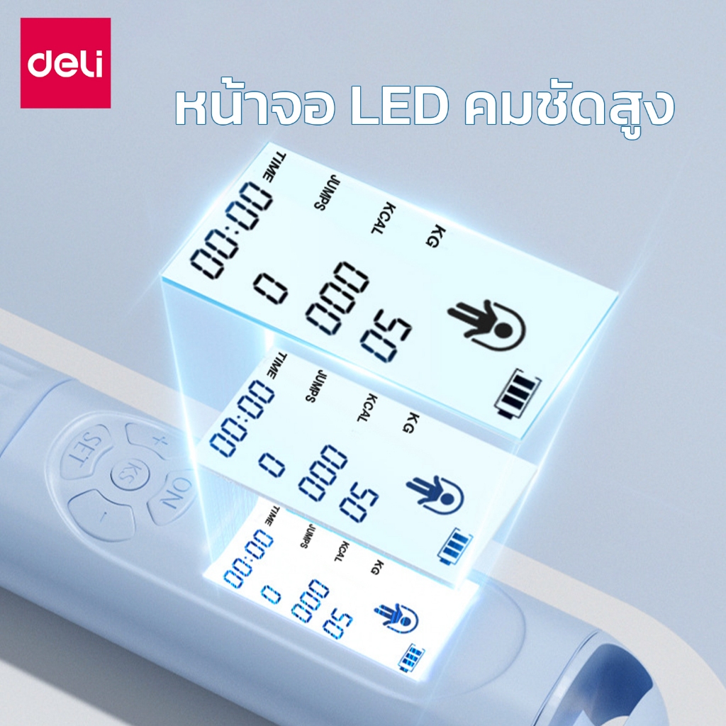 Deli เชือกกระโดดไร้สาย เชือกกระโดดไฟฟ้า เชือกกระโดดออกกำลังกาย มีหน้าจอ นับรอบ ปริมาณการเผาผลาญ Jump Rope