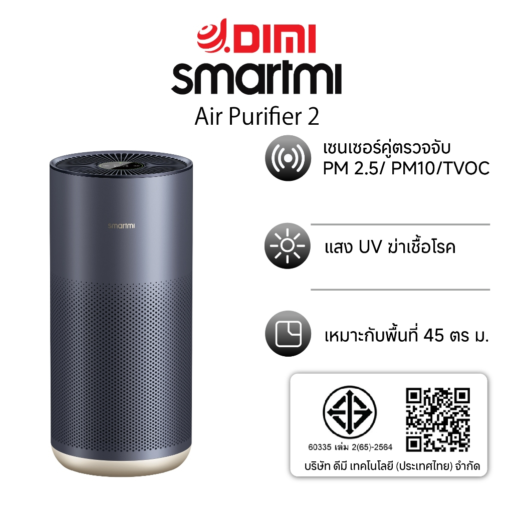 Smartmi AirPurifier2 เครื่องฟอกอากาศตรวจจับฝุ่น TVOC/PM2.5/PM10สำหรับพื้นที่ 45ตรม.ประกันศูนย์ไทย1ปี