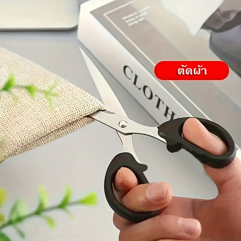 กรรไกรอเนกประสงค์ สแตนเลส ด้ามพลาสติกสีดำ ขนาดกะทัดรัด ใช้งานง่าย พกพาสะดวกและปลอดภัย