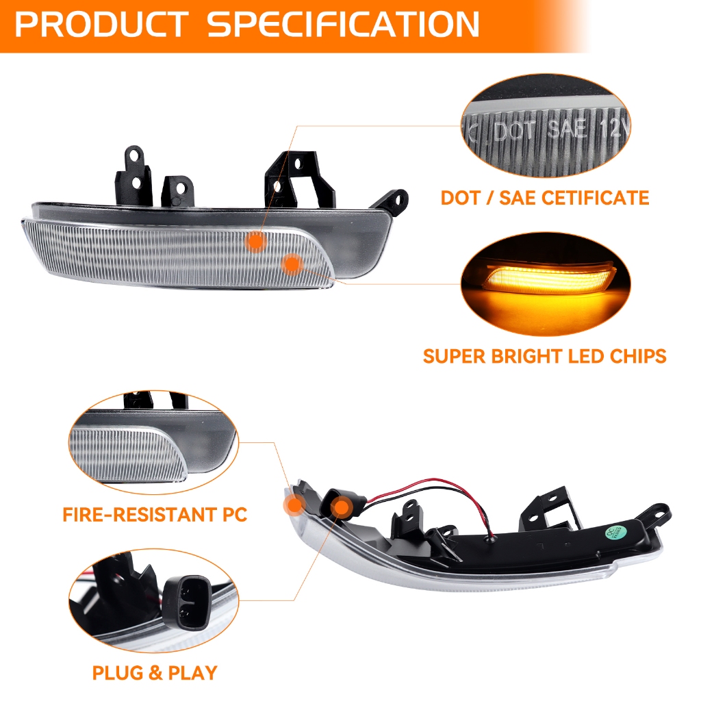 2ชิ้นสีเหลือง ไฟเลี้ยวแบบไดนามิกกระจกมองหลังไฟแสดงสถานะสํ Toyota WISH PRIUS REIZ/MARK X/CROWN/AVALON