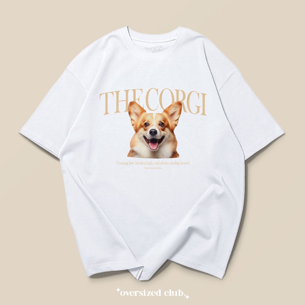เสื้อยืดโอเวอร์ไซส์ สกรีนลาย The Corgi เดอะ คอร์กี้ [Oversize Cotton 100% by Oversized Club]
