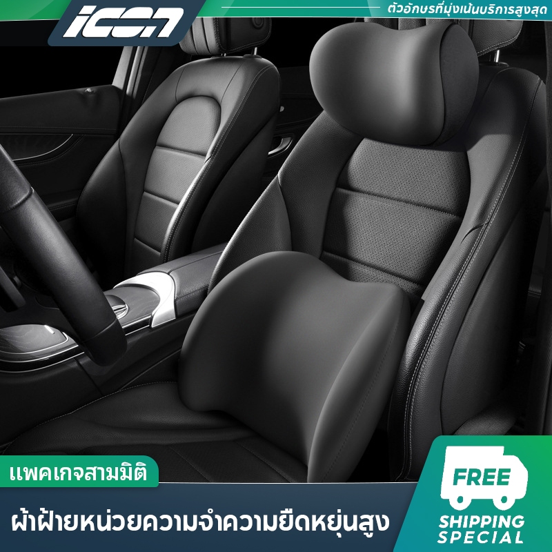 หมอนรองคอรถยนต์ ชุดหมอนรองหลังเอว โฟมความจำ การยศาสตร์ นุ่มเด้ง ปรับระดับได้ ช่วยลดเมื่อย สำหรับทุกยี่ห้อรถ สีดำเทาน้ำตา