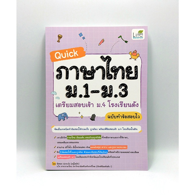INSPAL : หนังสือ QUICK ภาษาไทย ม.1-ม.3 เตรียมสอบเข้า ม.4 โรงเรียนดัง ฉบับทำข้อสอบไว 9786163814746 (Life Balance)